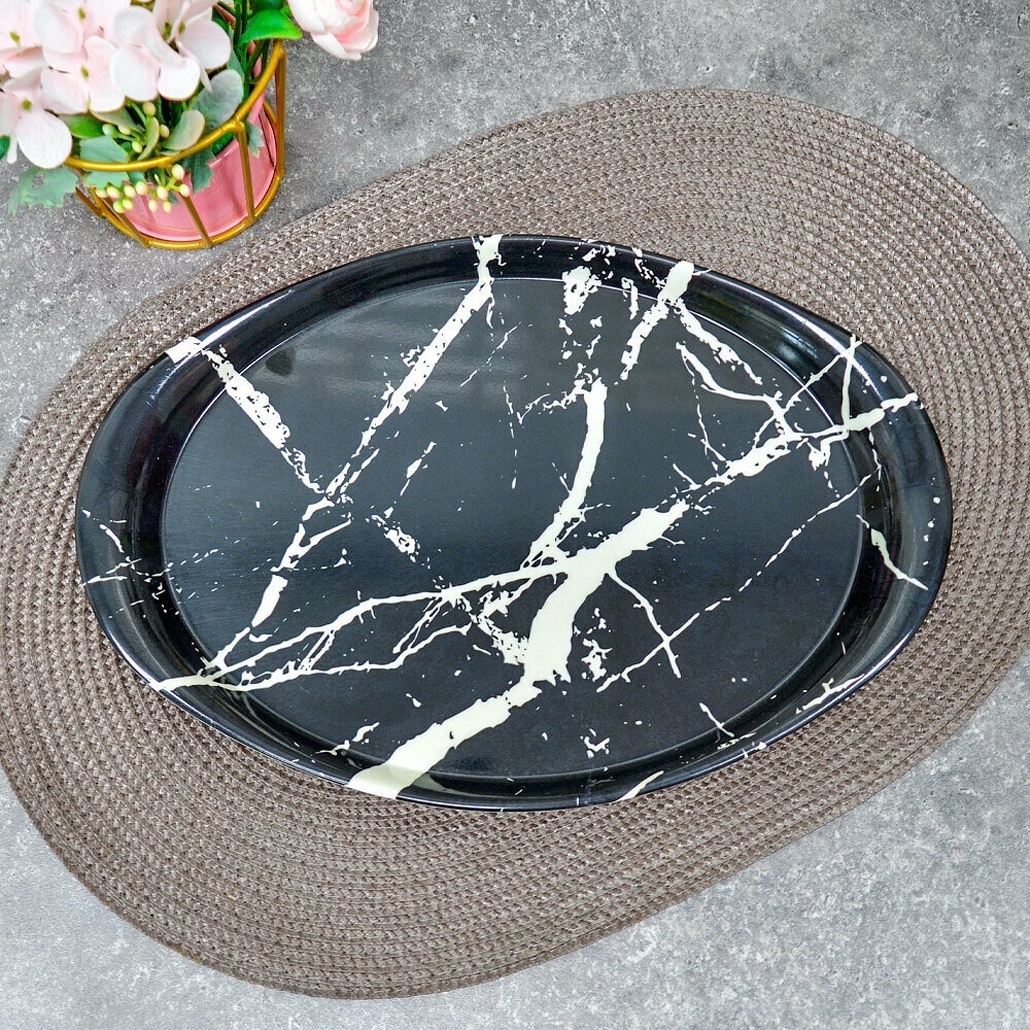Ищете идеальный поднос для сервировки или хранения? Наш пластиковый поднос размером 32,5х22,5 см станет отличным решением для вашего дома. Его элегантный черный цвет с белыми мраморными прожилками добавит изысканности любому интерьеру, а гладкая поверхность облегчает уход и чистку.