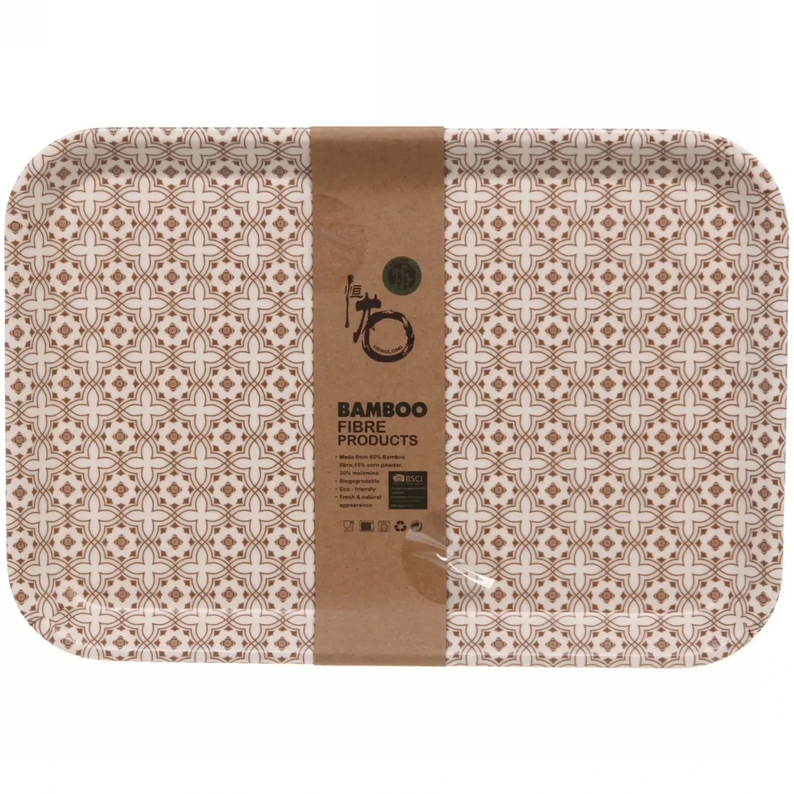 Поднос выполнен в светло-бежевом цвете с коричневыми узорами, что делает его универсальным для любого стиля кухни. Он не только практичен, но и служит украшением вашего стола. Благодаря прочности бамбука, поднос выдерживает большие нагрузки, что делает его надежным помощником на кухне.