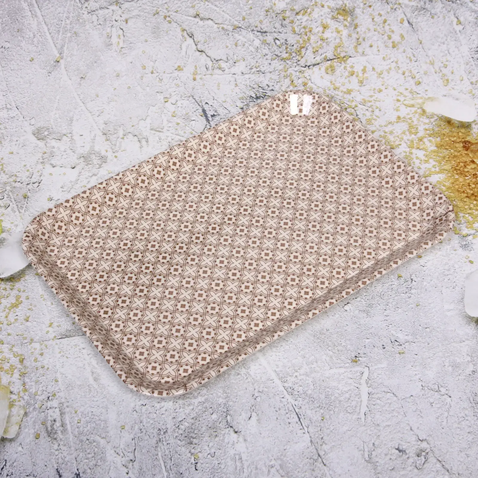 - Размер 38,5×27 см оптимален для подачи закусок, фруктов и основных блюд