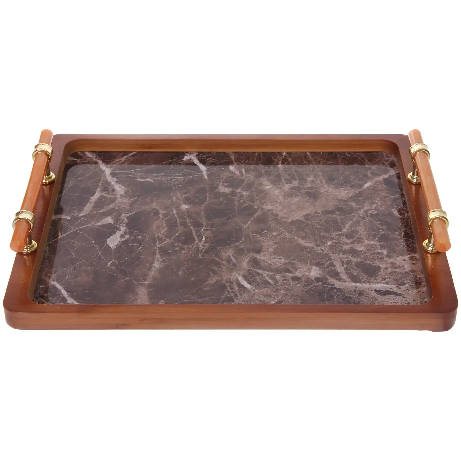 Поднос для завтрака «SHEF», бамбук и пластик, 34.5х25х5.5 см, темный мрамор, удобные ручки