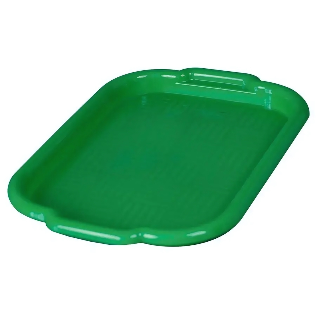 Поднос пластиковый малый, комфортная форма, гладкий, зелёный цвет, бортики средней высоты, 28х40см, ручка с углублением
