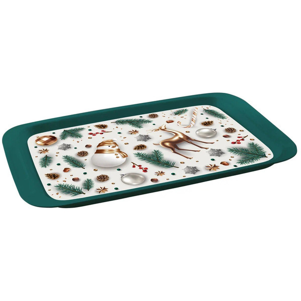 Создайте атмосферу уюта и волшебства с помощью подноса малый «Сказочный лес». Этот стильный и практичный аксессуар станет незаменимым помощником в сервировке стола, добавляя нотку праздника в каждое ваше мероприятие. Его уникальный дизайн с изображениями елочных игрушек, шишек и снежинок не только радует глаз, но и создает теплую атмосферу, идеально подходящую для новогодних праздников.