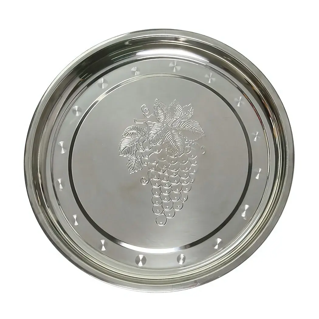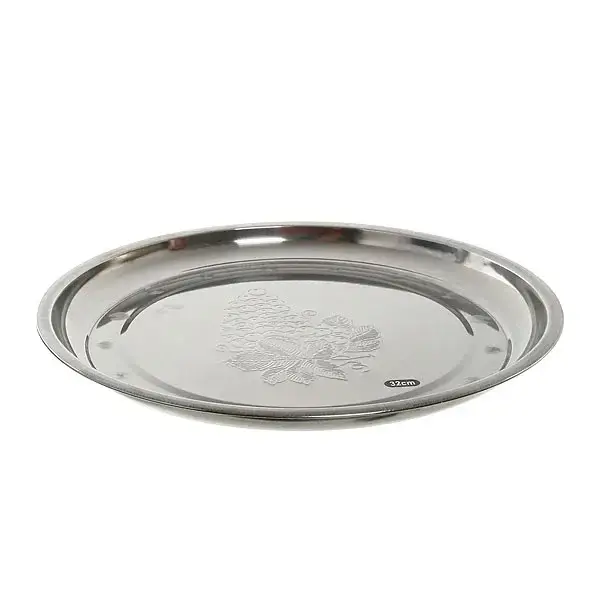 Поднос имеет стандартный диаметр 32 см, что делает его универсальным для различных блюд. Его гладкая поверхность легко очищается от загрязнений, а блестящий серебристый цвет сохраняет свой первоначальный вид даже после многократного использования. Этот поднос станет не только практичным, но и стильным элементом вашего интерьера.