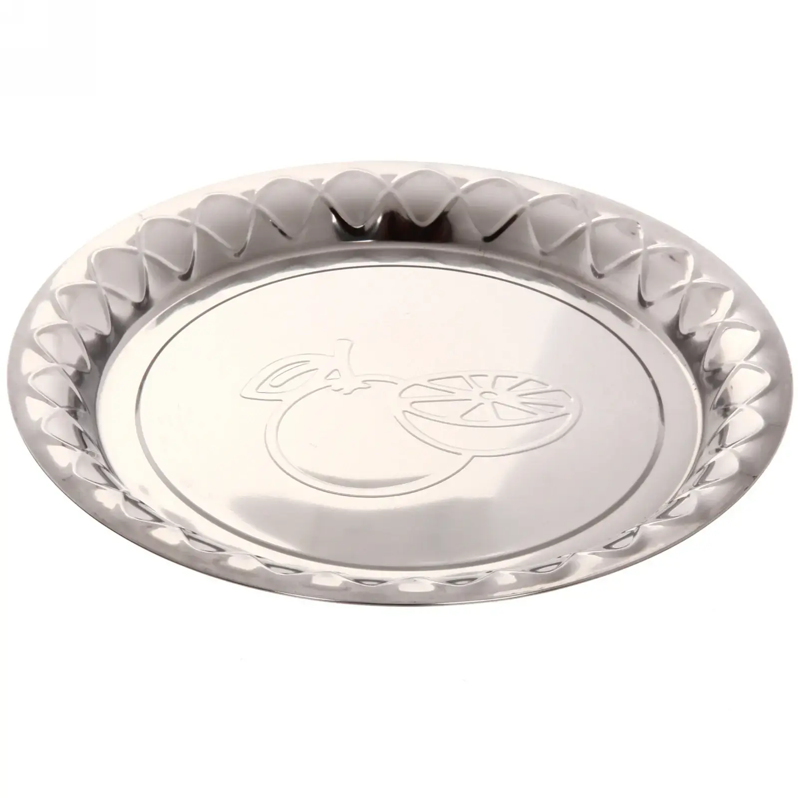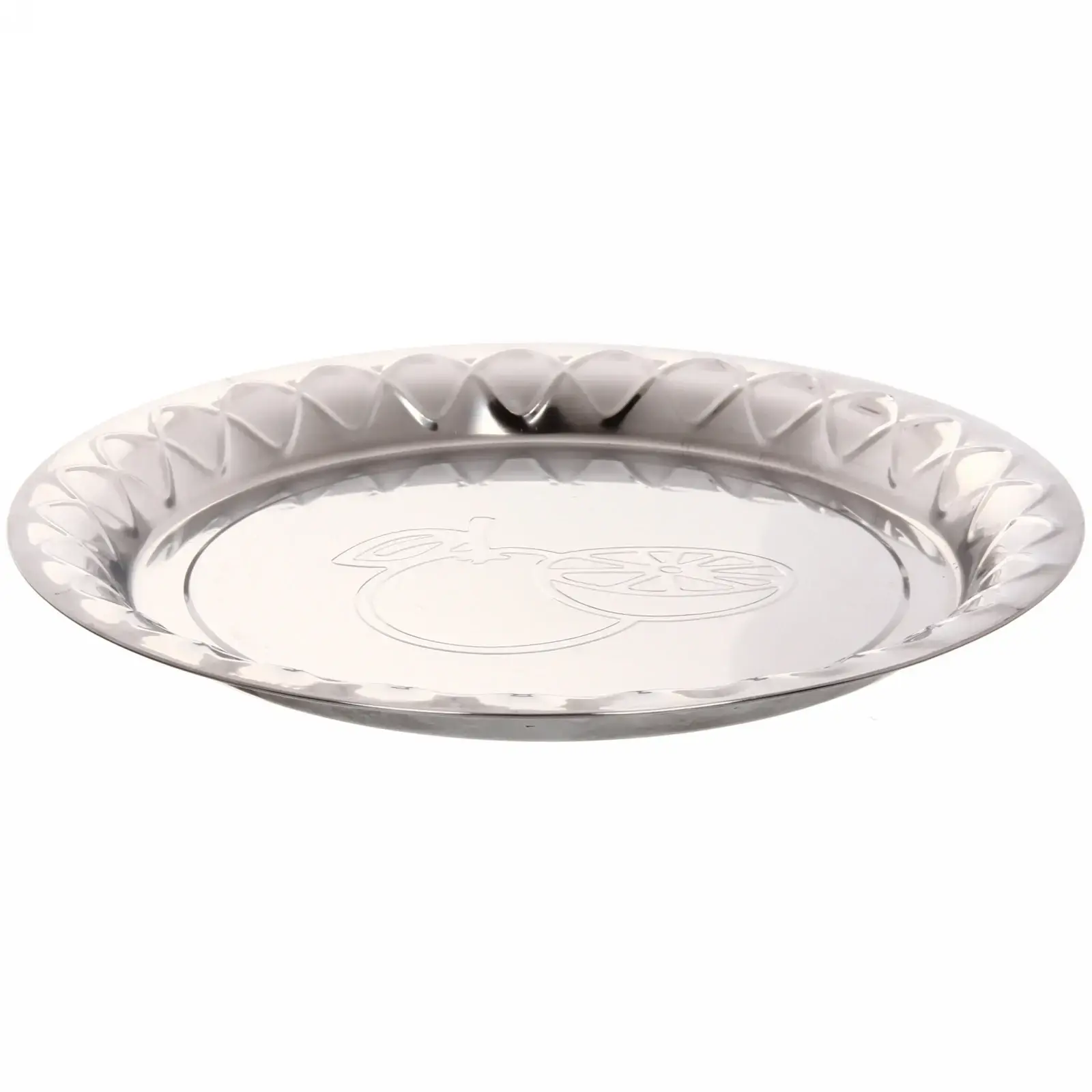Размер подноса составляет 28 см в диаметре, что делает его идеальным для сервировки различных блюд. Он имеет округлую форму и закругленные края, что обеспечивает безопасность при использовании. Поднос украшен волнистым узором по краям, что добавляет ему элегантности.