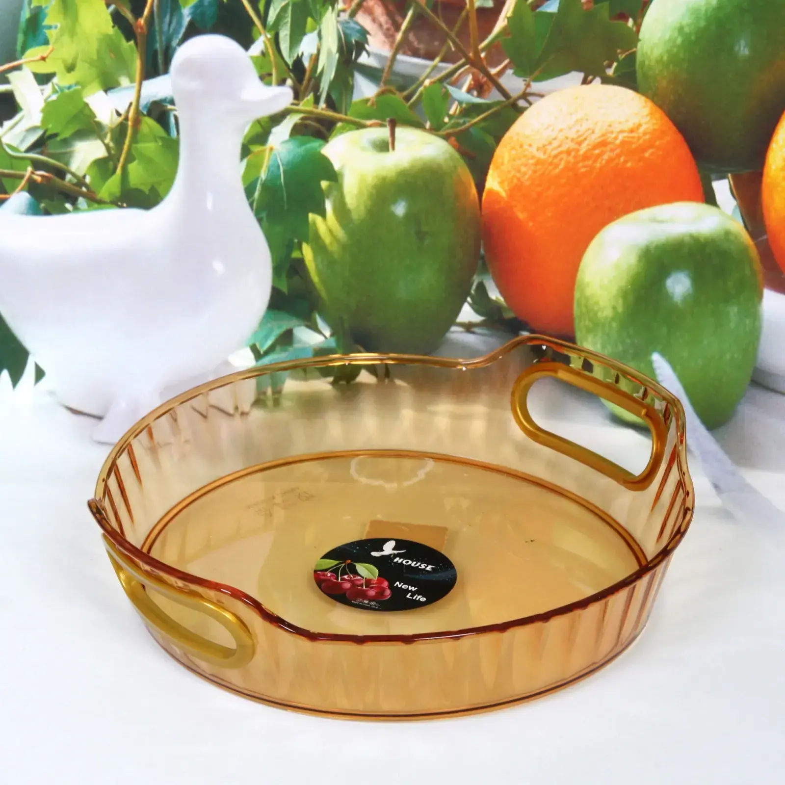 Этот стильный поднос станет незаменимым аксессуаром для сервировки и хранения продуктов. Его золотистый цвет и прозрачный материал придают элегантный вид, а удобные ручки обеспечивают легкость в переноске. Поднос «Grace» идеально подходит для подачи закусок, десертов или фруктов, добавляя изысканности любому столу.