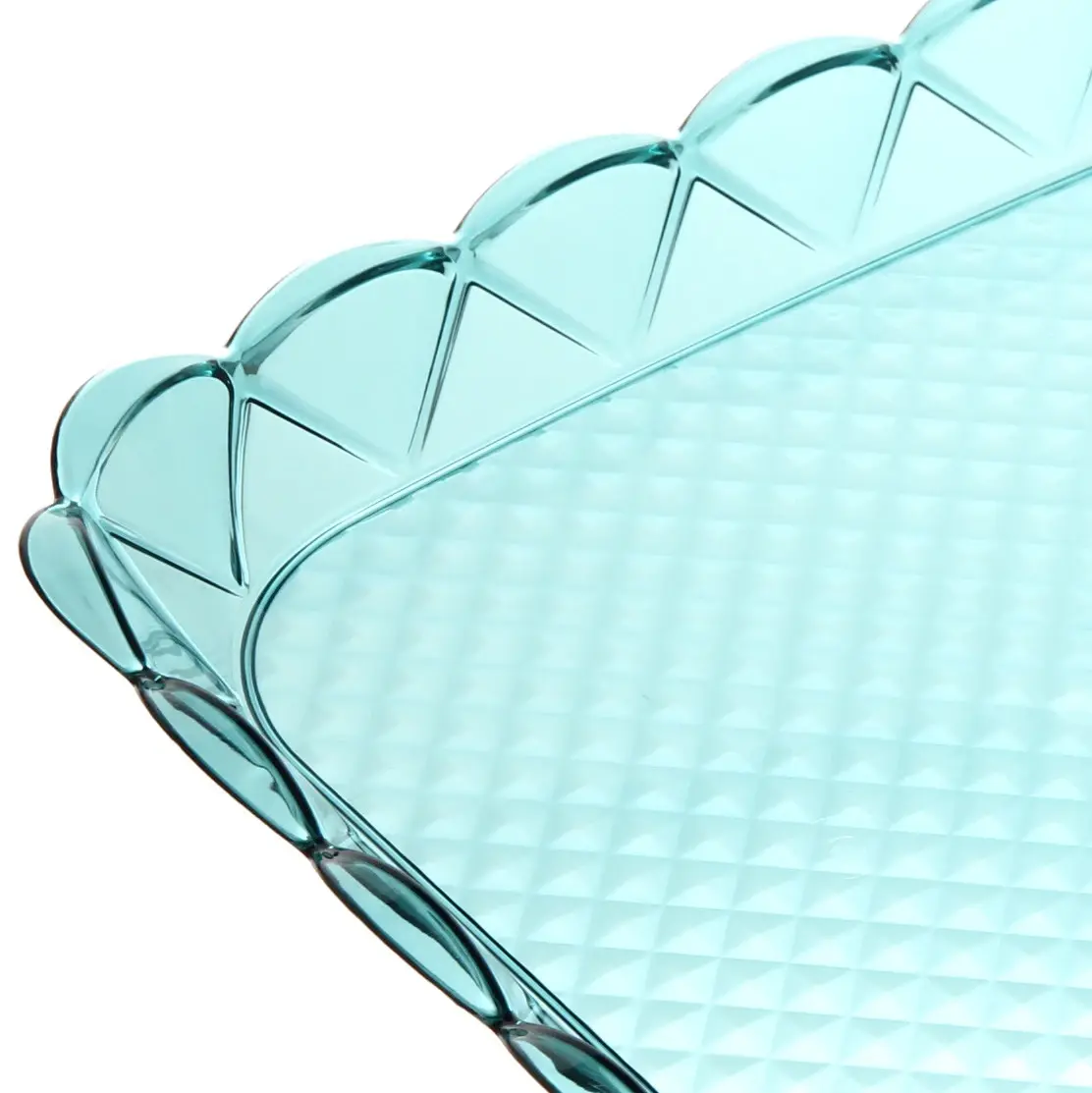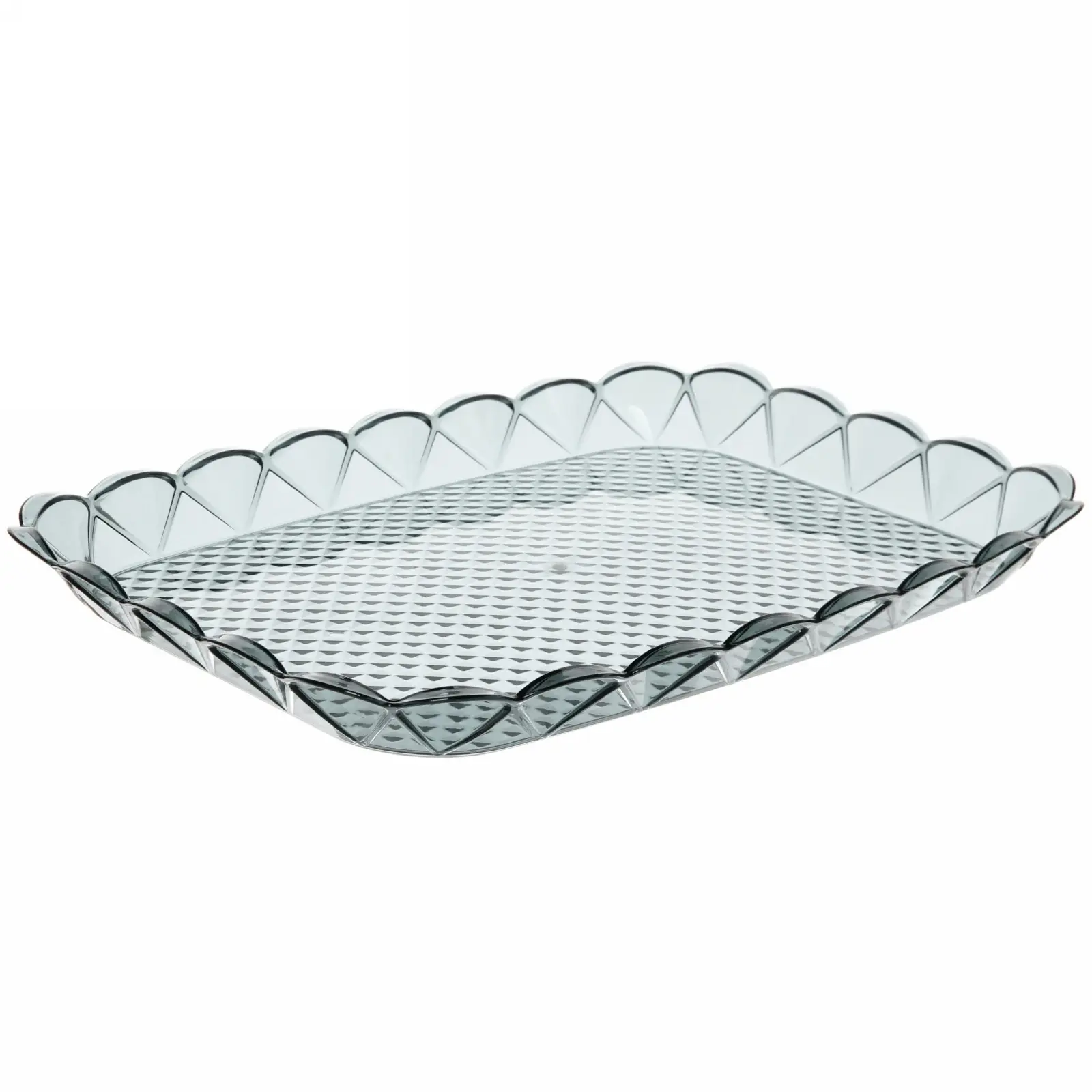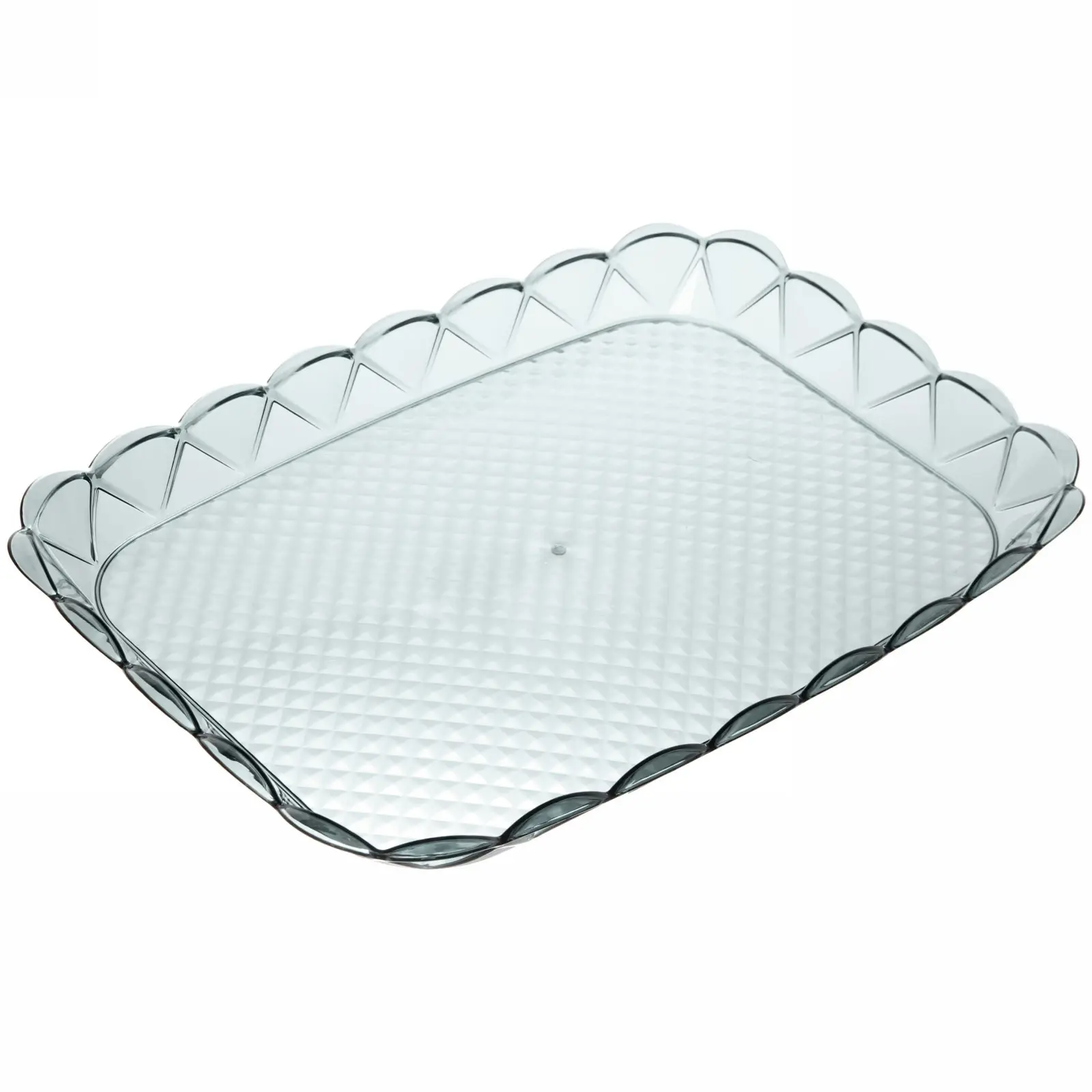 Почему стоит выбрать именно этот поднос? Во-первых, он легкий и прочный, что обеспечивает долговечность. Во-вторых, его прозрачный материал с легким голубоватым оттенком придаст вашему столу стильный вид. В-третьих, рифленая текстура на поверхности не только добавляет декоративности, но и предотвращает скольжение блюд, что делает его безопасным в использовании.
