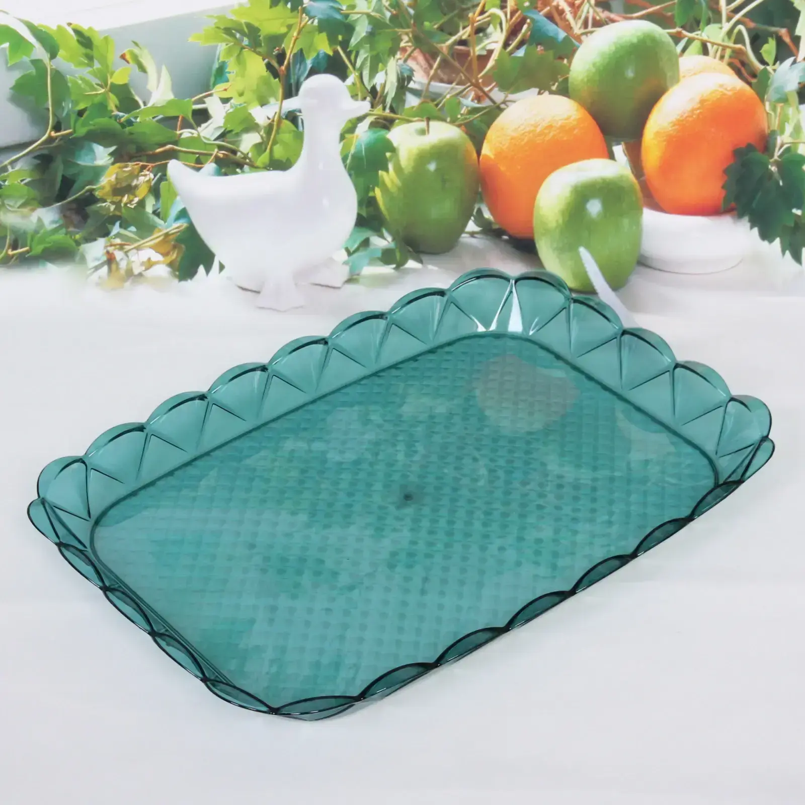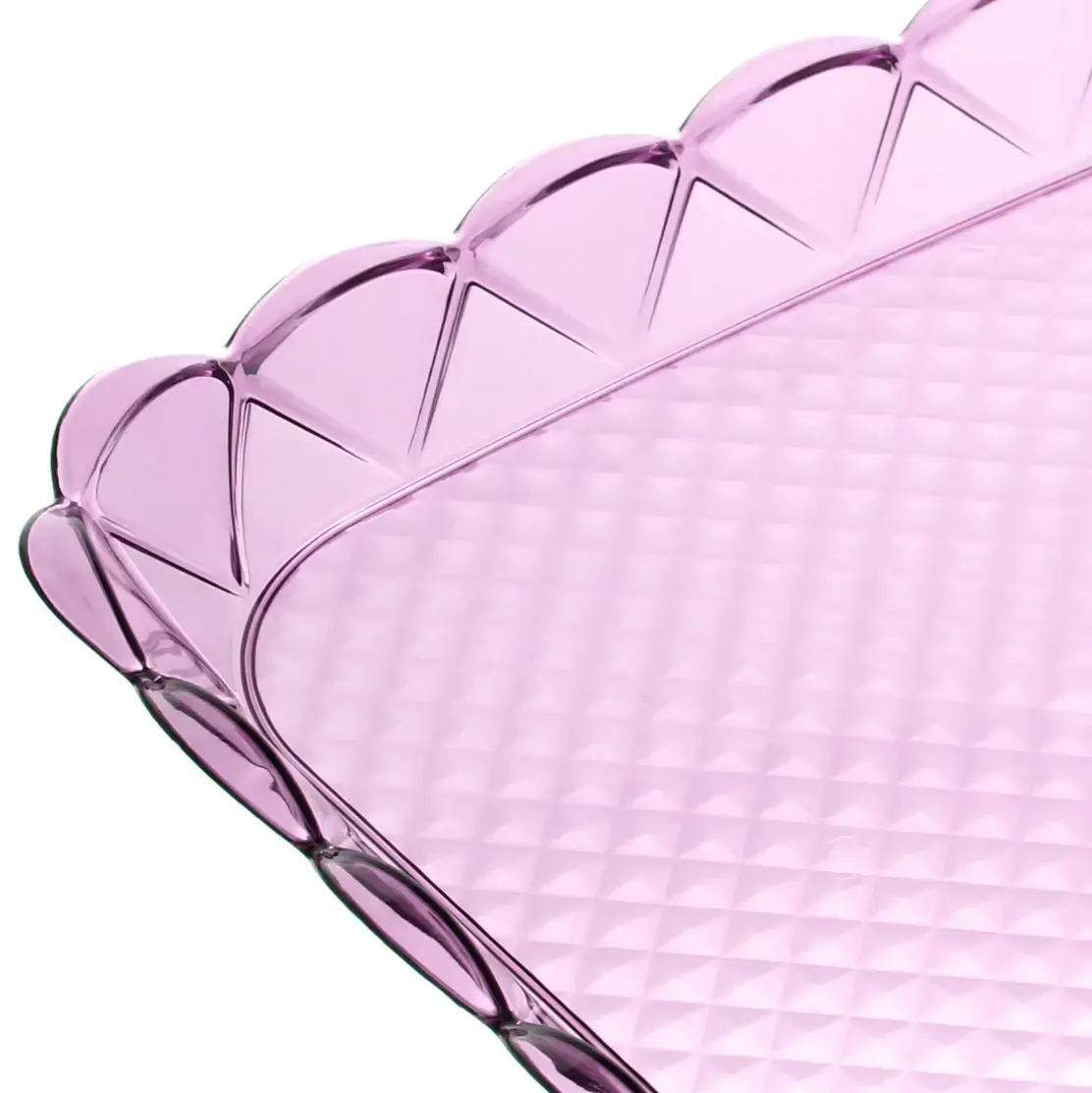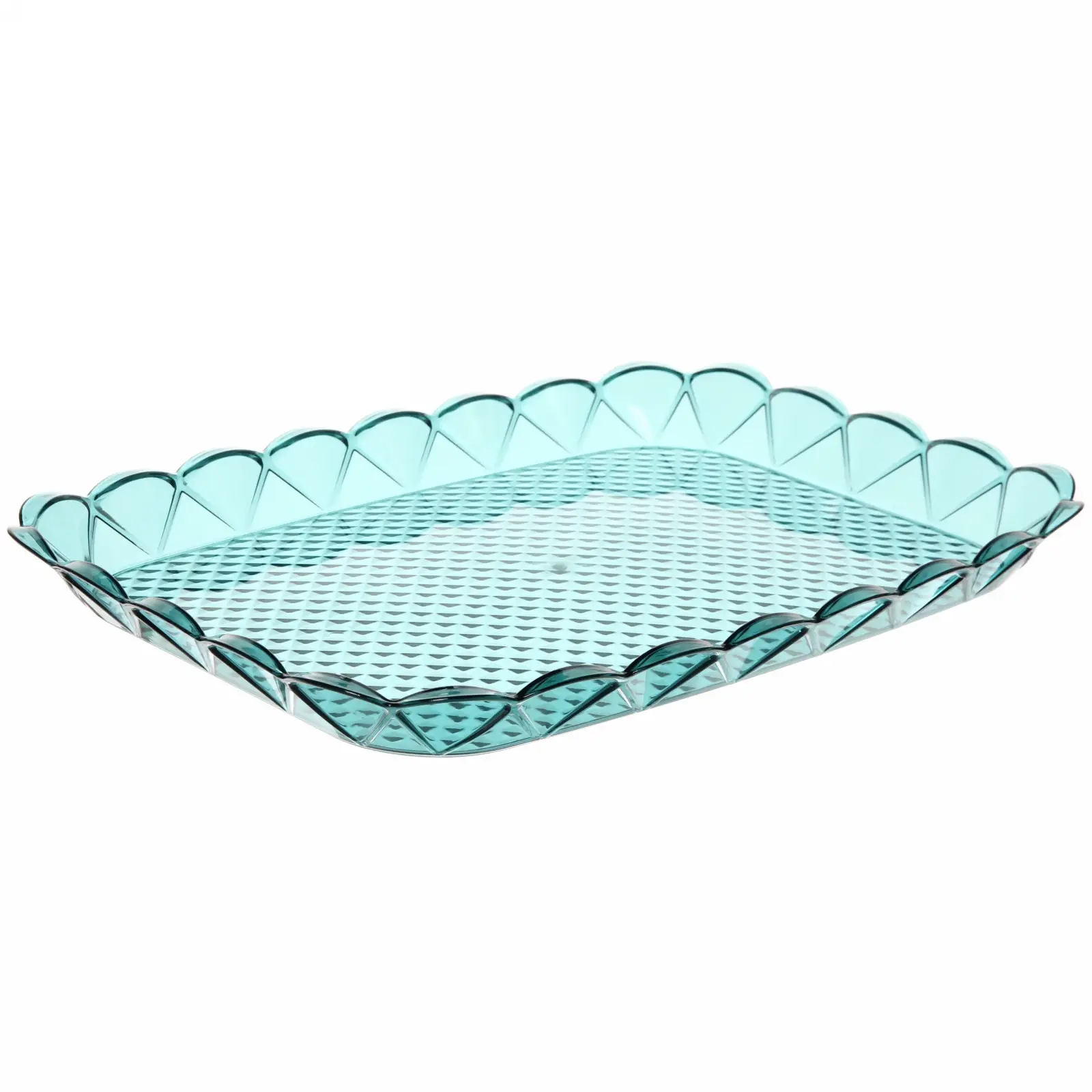 Почему стоит выбрать именно этот поднос? Во-первых, он легкий и прочный, что обеспечивает долговечность. Во-вторых, его прозрачный материал с легким голубоватым оттенком придаст вашему столу стильный вид. В-третьих, рифленая текстура на поверхности не только добавляет декоративности, но и предотвращает скольжение блюд, что делает его безопасным в использовании.