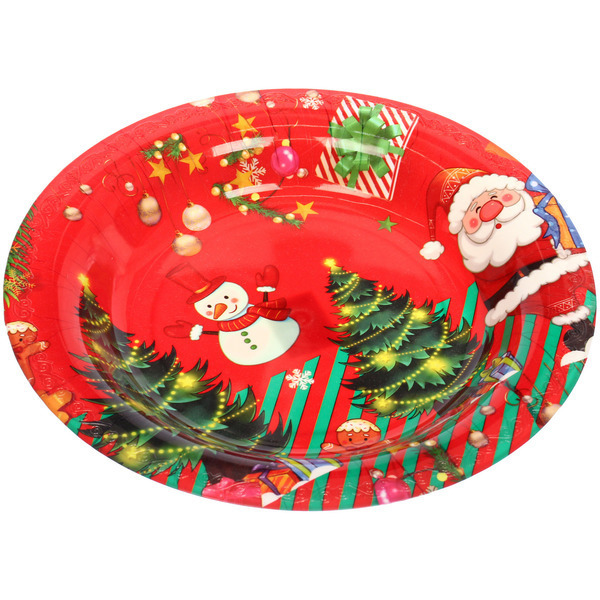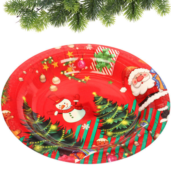 Создайте атмосферу праздника с помощью нашего пластикового подноса «Новогодние подарки»! Этот яркий поднос диаметром 29 см идеально подходит для подачи закусок и десертов во время новогодних праздников. Его красный цвет и праздничный дизайн с изображениями Деда Мороза, снеговиков и ёлок создадут настроение веселья и радости на вашем столе.