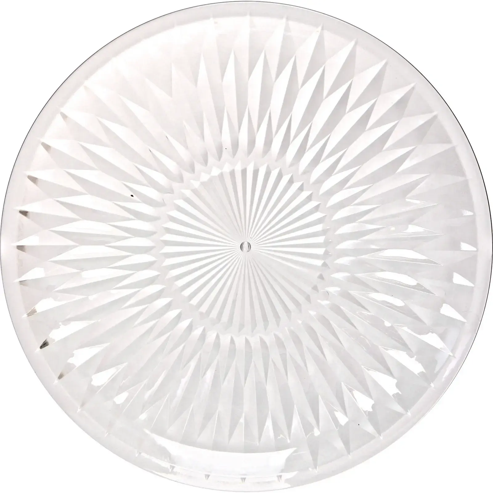 Круглая форма диаметром 34 см с оптимальной высотой бортиков 2 см. Вес 180 г позволяет легко переносить посуду одной рукой. Прозрачный глянцевый материал визуально увеличивает пространство, гармонично сочетаясь с любой посудой.