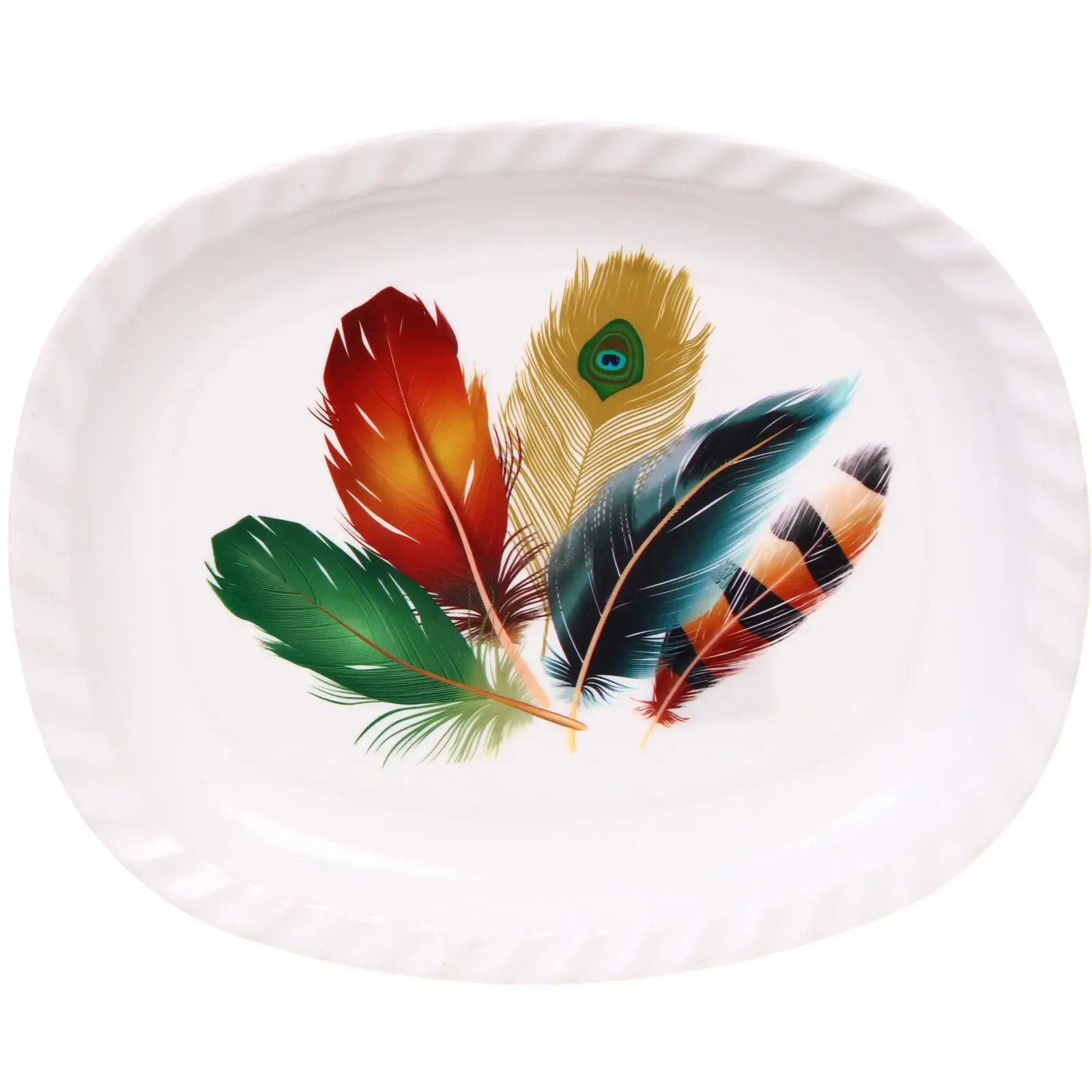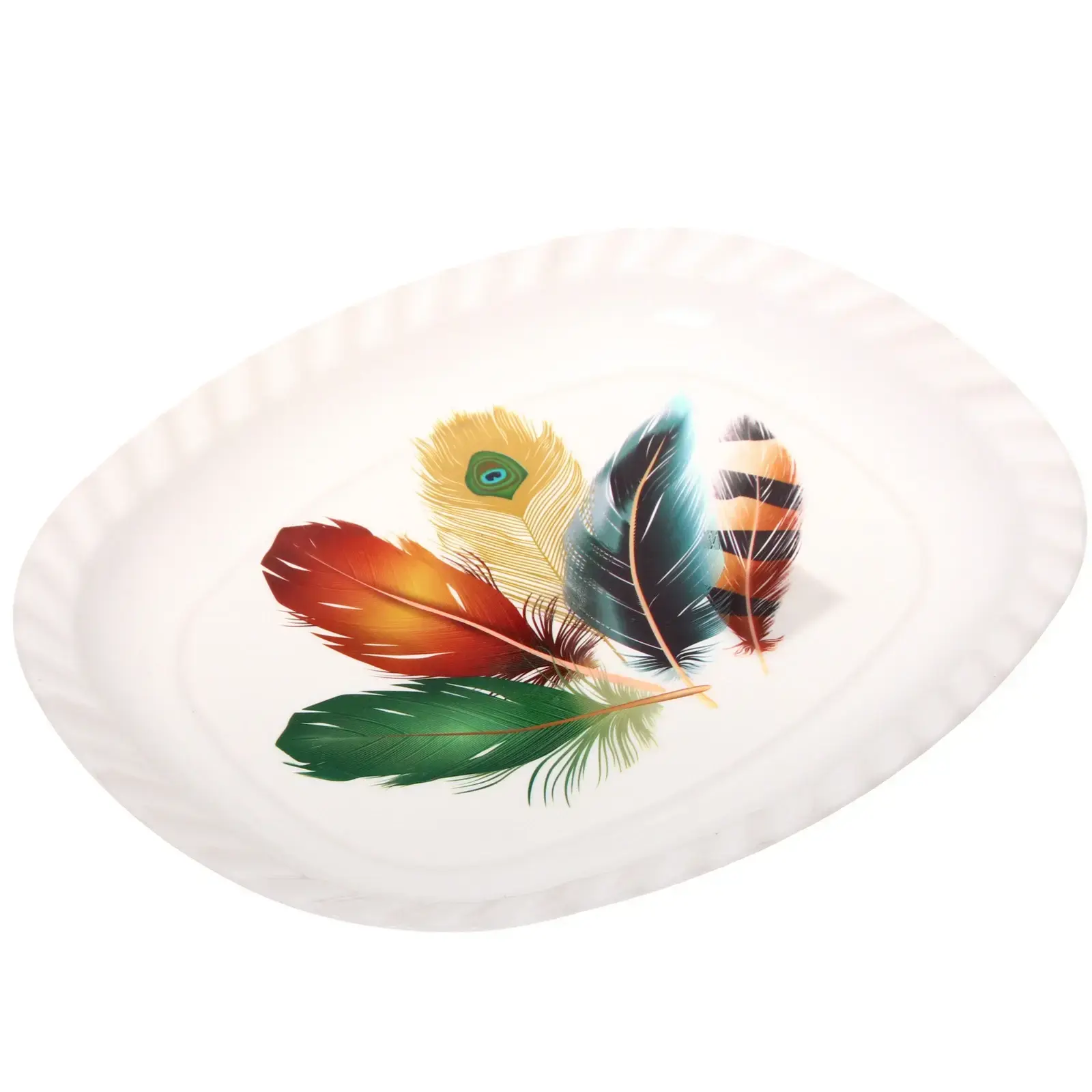 Превратите повседневную подачу блюд в настоящее искусство с пластиковым подносом 'Волшебное перо'. Его уникальный дизайн с изящным принтом перьев добавит изысканности вашему столу.