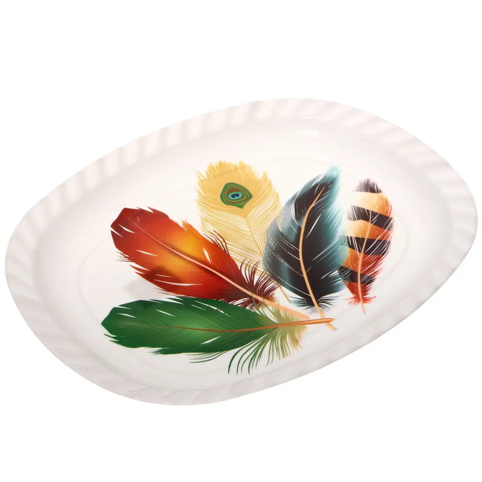 Поднос пластиковый «Волшебное перо» 37х29х3 см, овальный, белый с цветными перьями