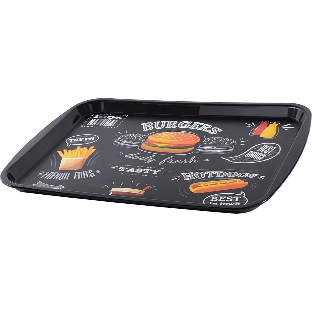 Пластиковый поднос «NATURAL» сочетает ретро-дизайн и современную практичность. Яркие иллюстрации с бургером, картофелем фри и аппетитными надписями создадут праздничное настроение на любой кухне или в кафе.