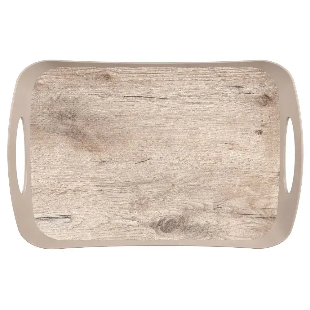 Поднос пластиковый с ручками, 41.2х50 см, декор под дерево, цвет светло-бежевый