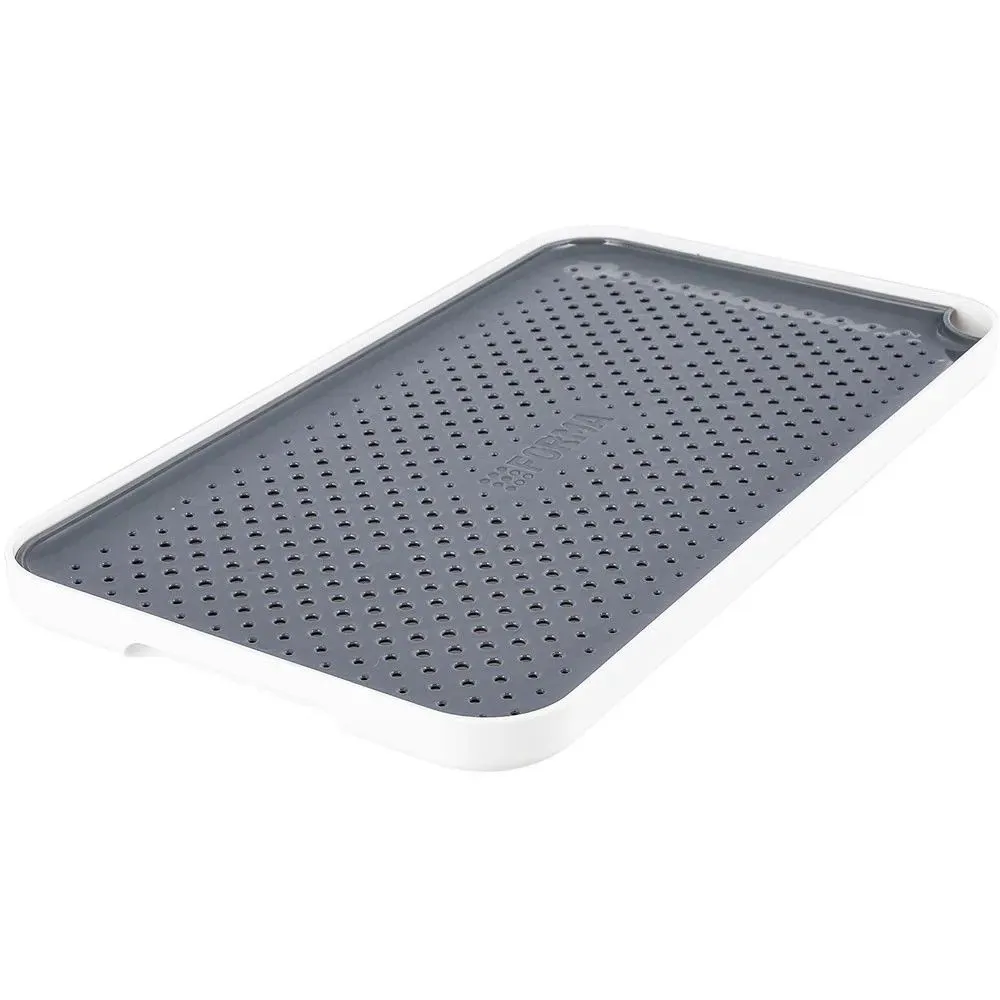 - Эффективная сушка: Перфорированная поверхность с равномерной сеткой отверстий обеспечивает отличную циркуляцию воздуха. Это позволяет воде быстро стекать и испаряться, предотвращая образование луж и застаивание влаги. Идеально для сушки вымытой посуды, свежих ягод, зелени или только что нарезанных овощей.