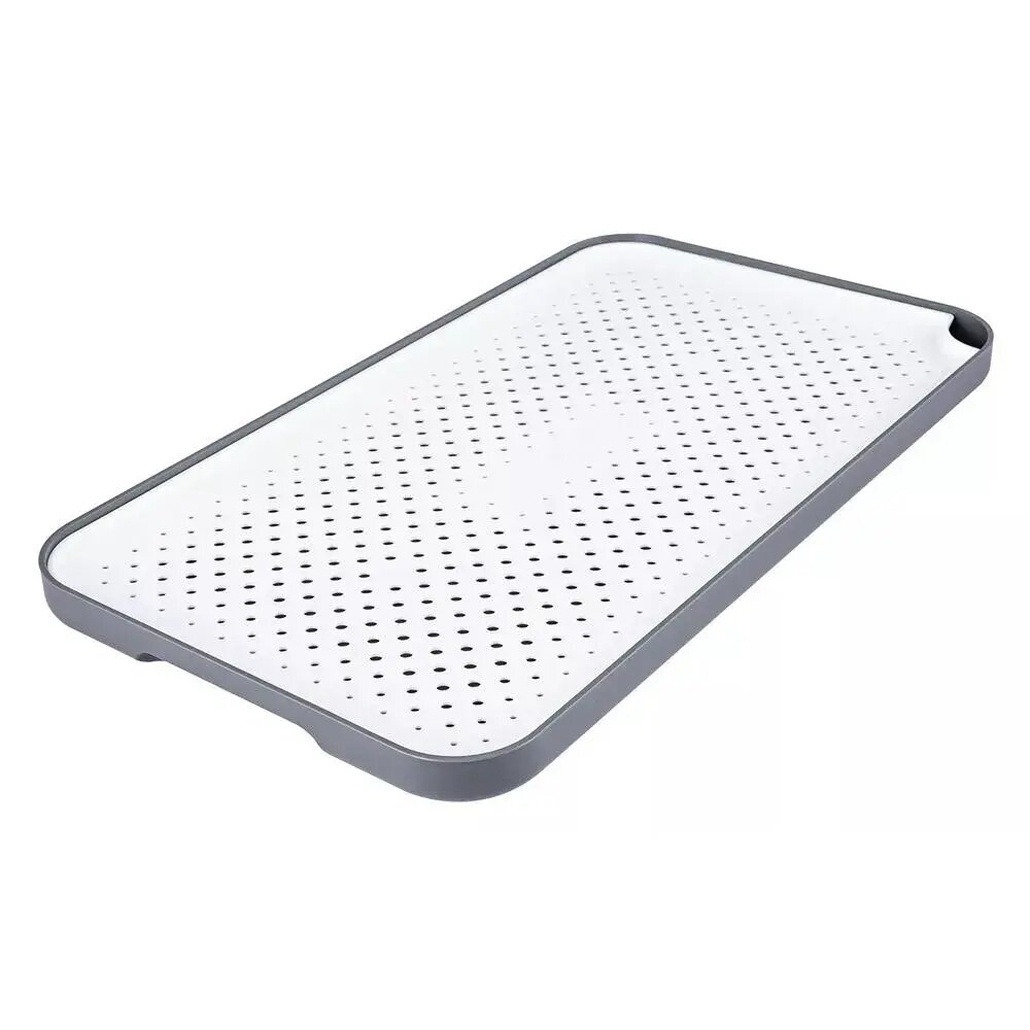 Легкий и прочный пластиковый поднос выполнен в прямоугольной форме с закруглёнными углами, что обеспечивает безопасность и удобство использования. Поверхность с множеством отверстий ускоряет процесс стекания воды, помогая эффективно сушить тарелки, стаканы, столовые приборы или овощи. Удобный размер подойдет для стандартных столешниц и мойки, позволяя оптимизировать пространство.