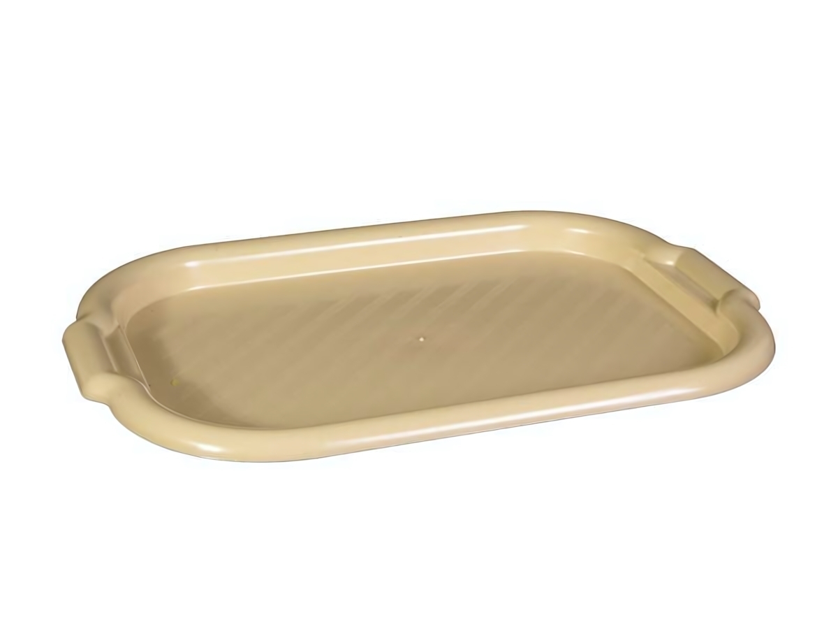 Цвет подноса — светло-кремовый, что гармонично впишется в любой интерьер. Материал легко моется и не впитывает запахи. Размер — 40.5х28 см — оптимален как для подачи посуды, так и для использования в быту.