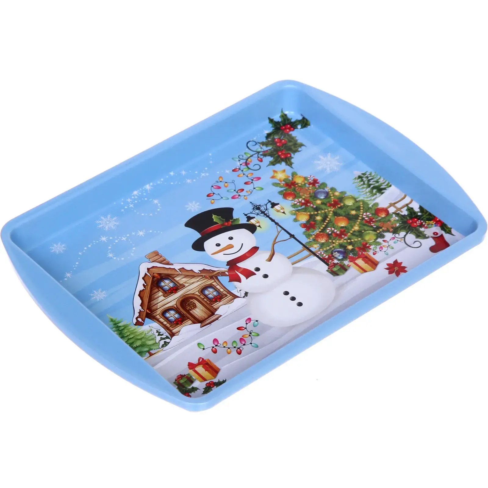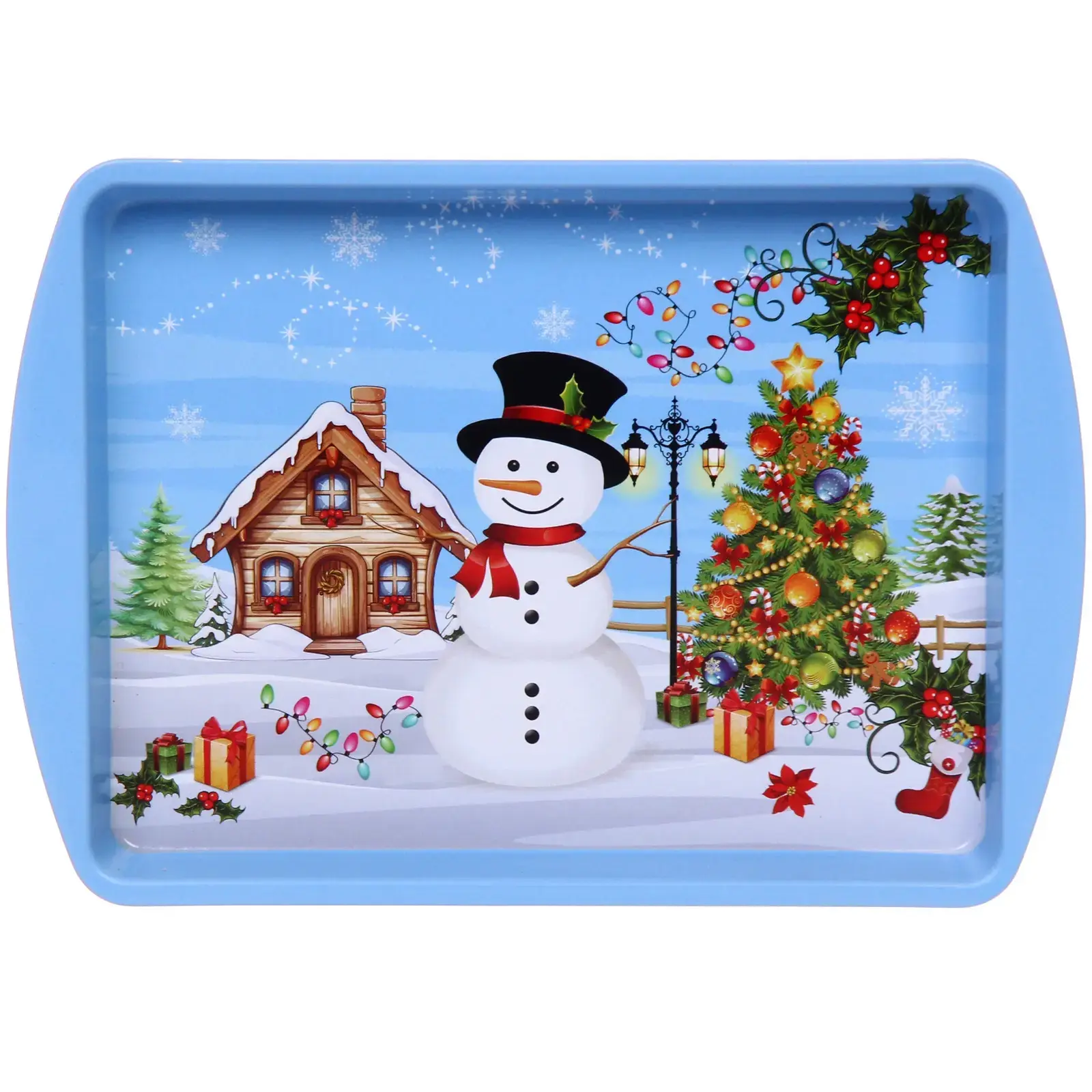Этот изящный поднос станет идеальным дополнением вашего праздничного стола. Его яркий зимний дизайн с очаровательным снеговиком и нарядной елкой моментально создаст атмосферу волшебства.