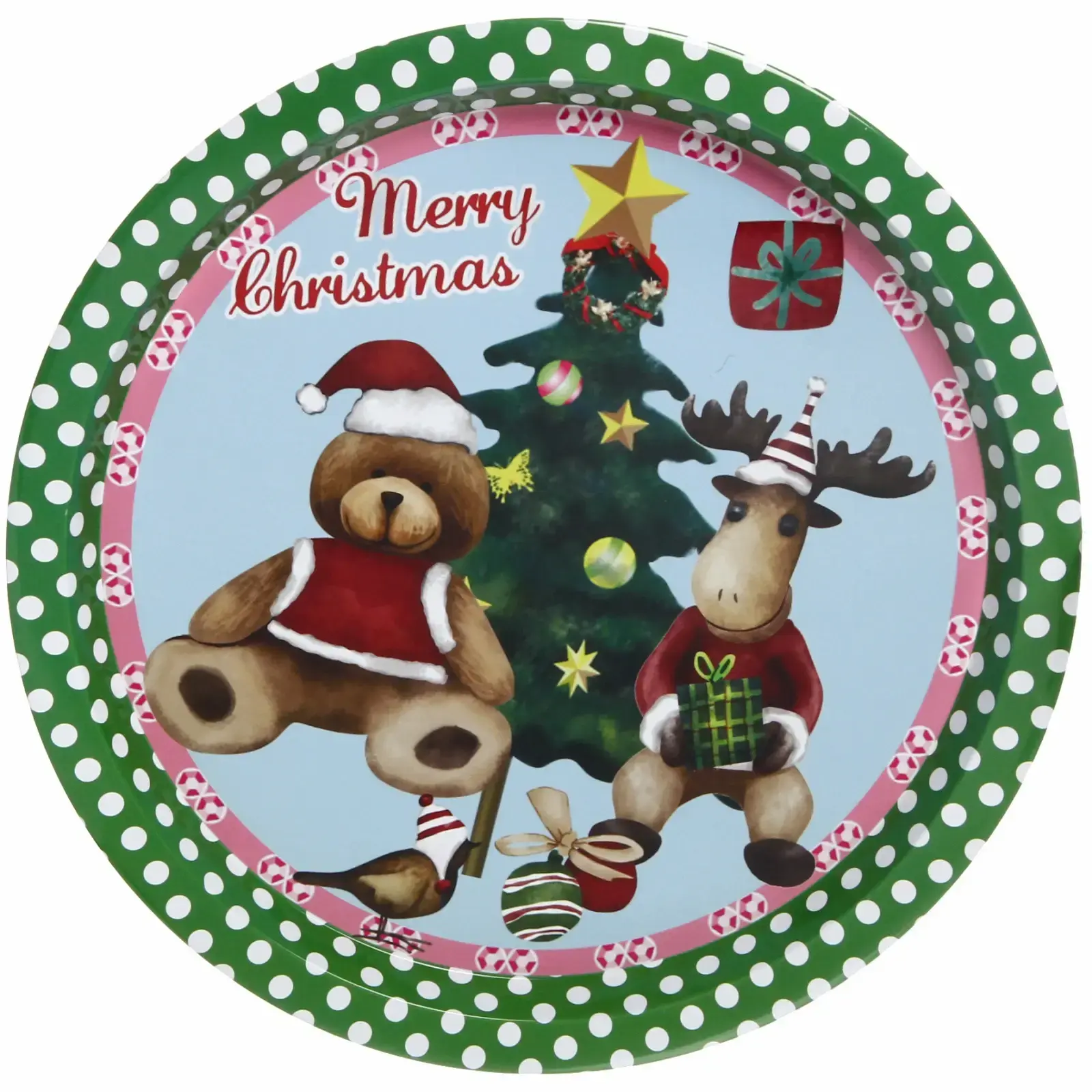 Этот очаровательный жестяной поднос диаметром 32 см моментально превратит любое застолье в настоящий зимний праздник. Милые мультяшные персонажи – медведь и олень – создадут атмосферу тепла и уюта.