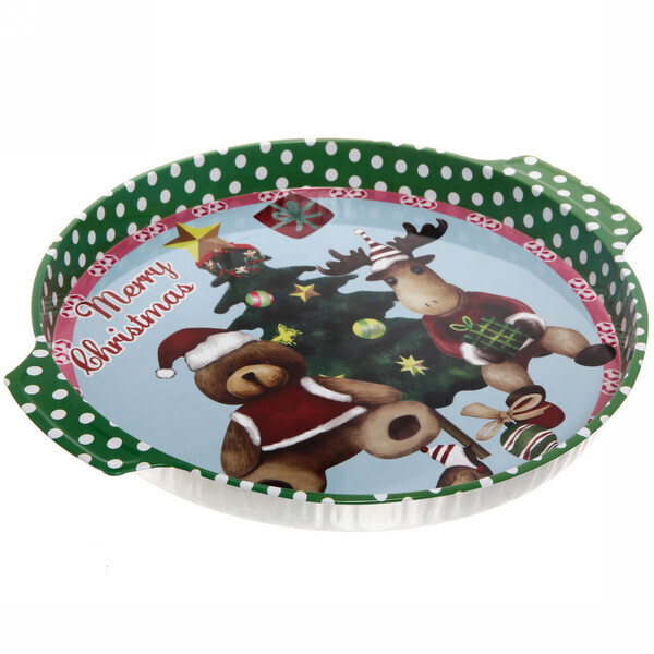 Поднос диаметром 32 см с удобными ручками идеально подходит для сервировки закусок, десертов или горячих блюд. Он станет отличным выбором для семейных праздников, встреч с друзьями или уютных вечеров в кругу близких. Благодаря своему дизайну, поднос легко впишется в любой интерьер, добавляя ему праздничного настроения.