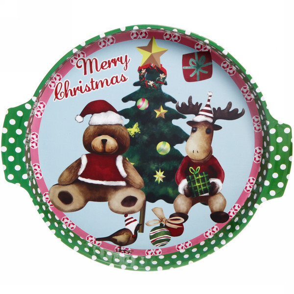 Поднос жестяной «Мишка и лось» — идеальный новогодний аксессуар