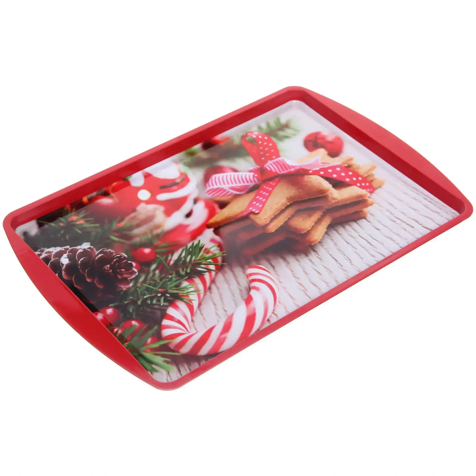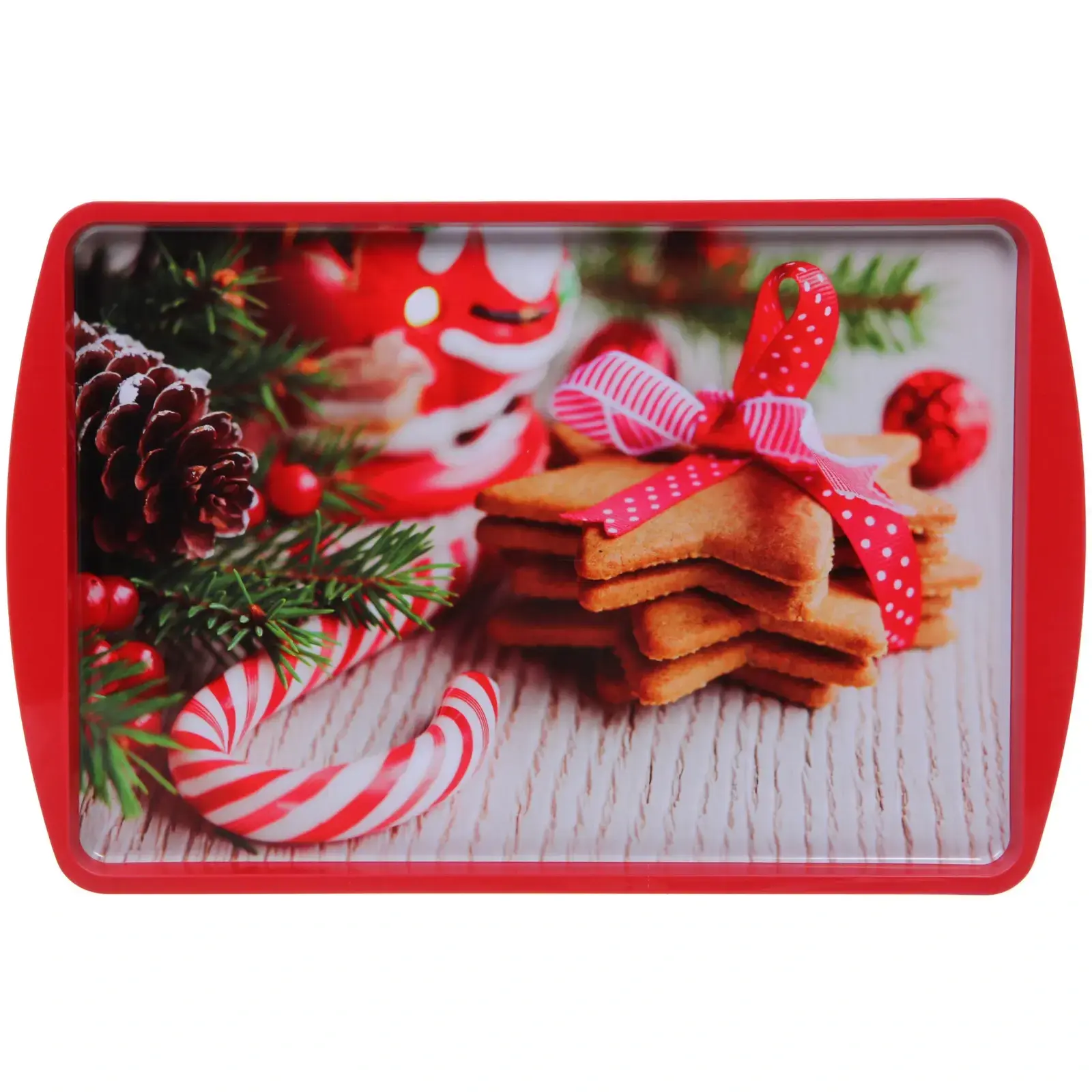 Поднос новогодний "Пряничное чудо", 38х24см, жестяной, красный