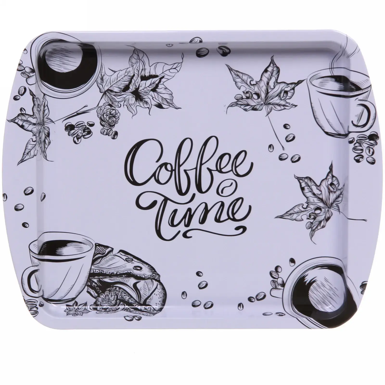 Поднос жестяной «Coffee Time» 24,5х19,5 см, белый, для сервировки кофе и десертов