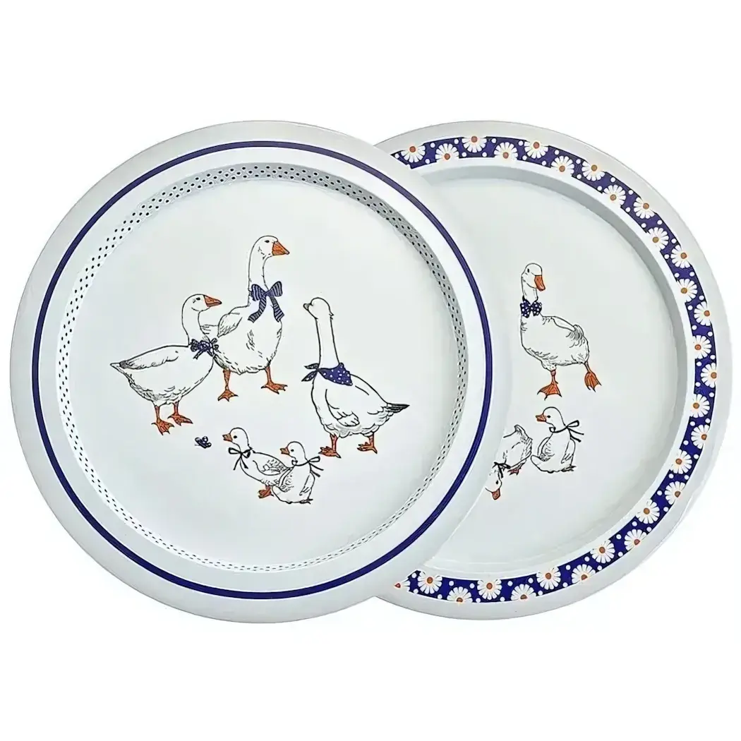 Поднос жестяной «Гуси» круглый, диаметр 30 см, цвет в ассортименте, узорная поверхность