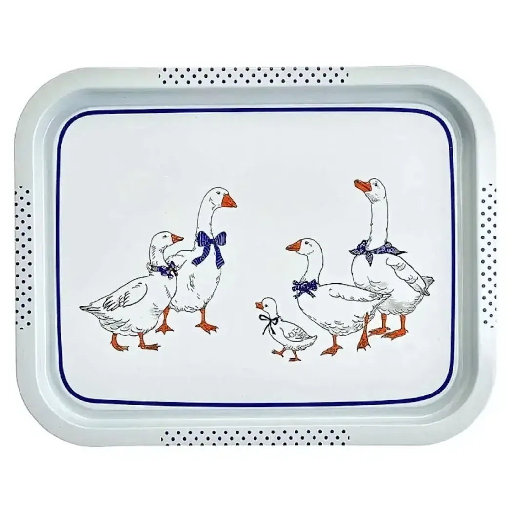 Поднос жестяной прямоугольный с рисунком гусей, 33.2х25.8 см, для сервировки и декора