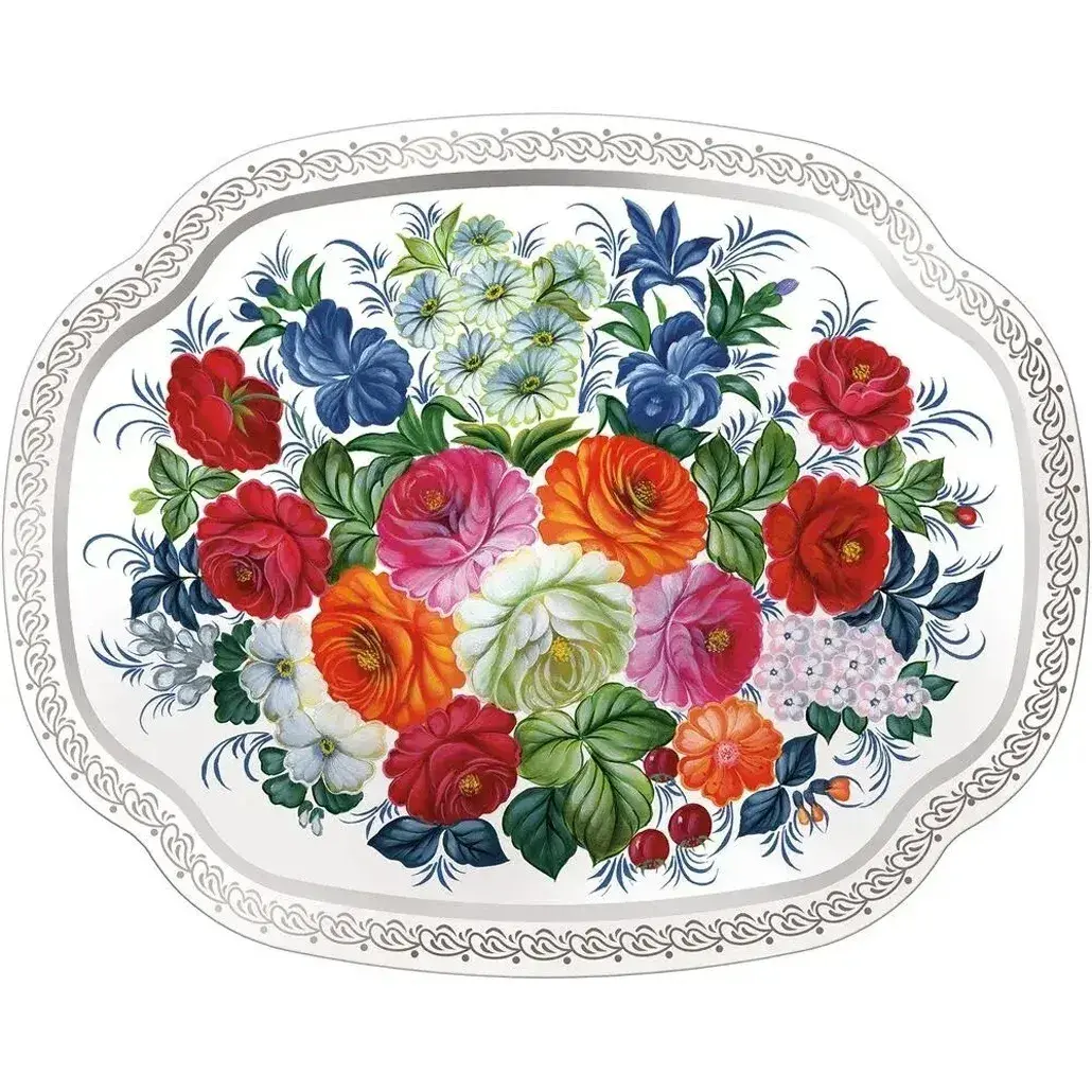 Поднос жестяной фигурный с цветочным орнаментом, 440х345 мм, цвет в ассортименте
