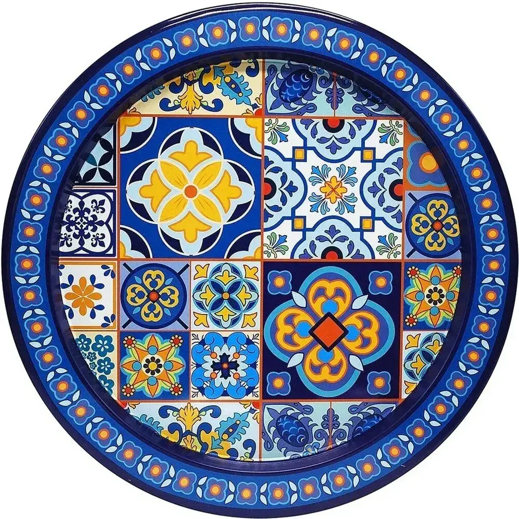 Поднос жестяной 'Времена года' круглый, d28см, синий с цветочным орнаментом