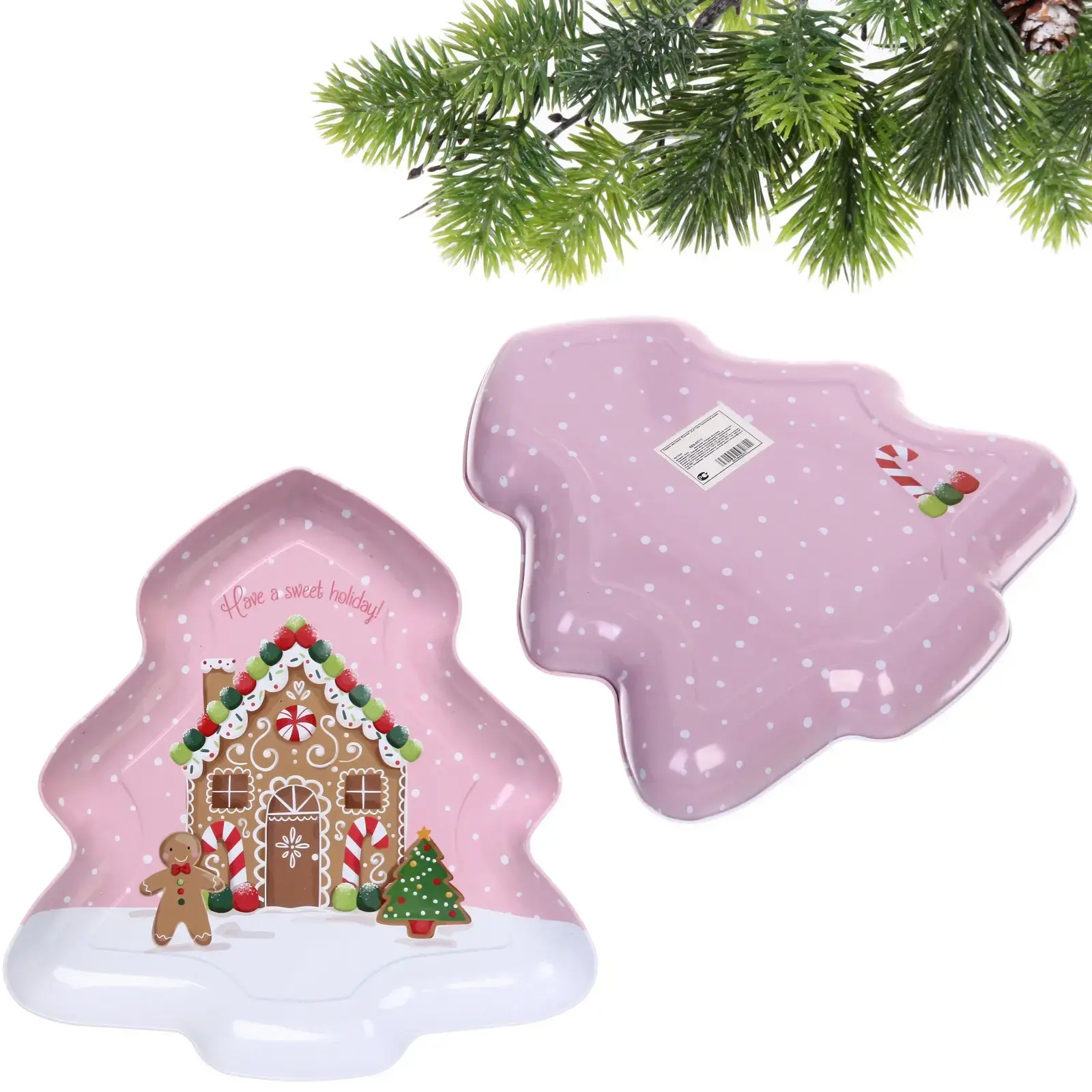 Поднос жестяной «Ёлочка» 25,8×15см, новогодний декор, дизайн пряничного домика