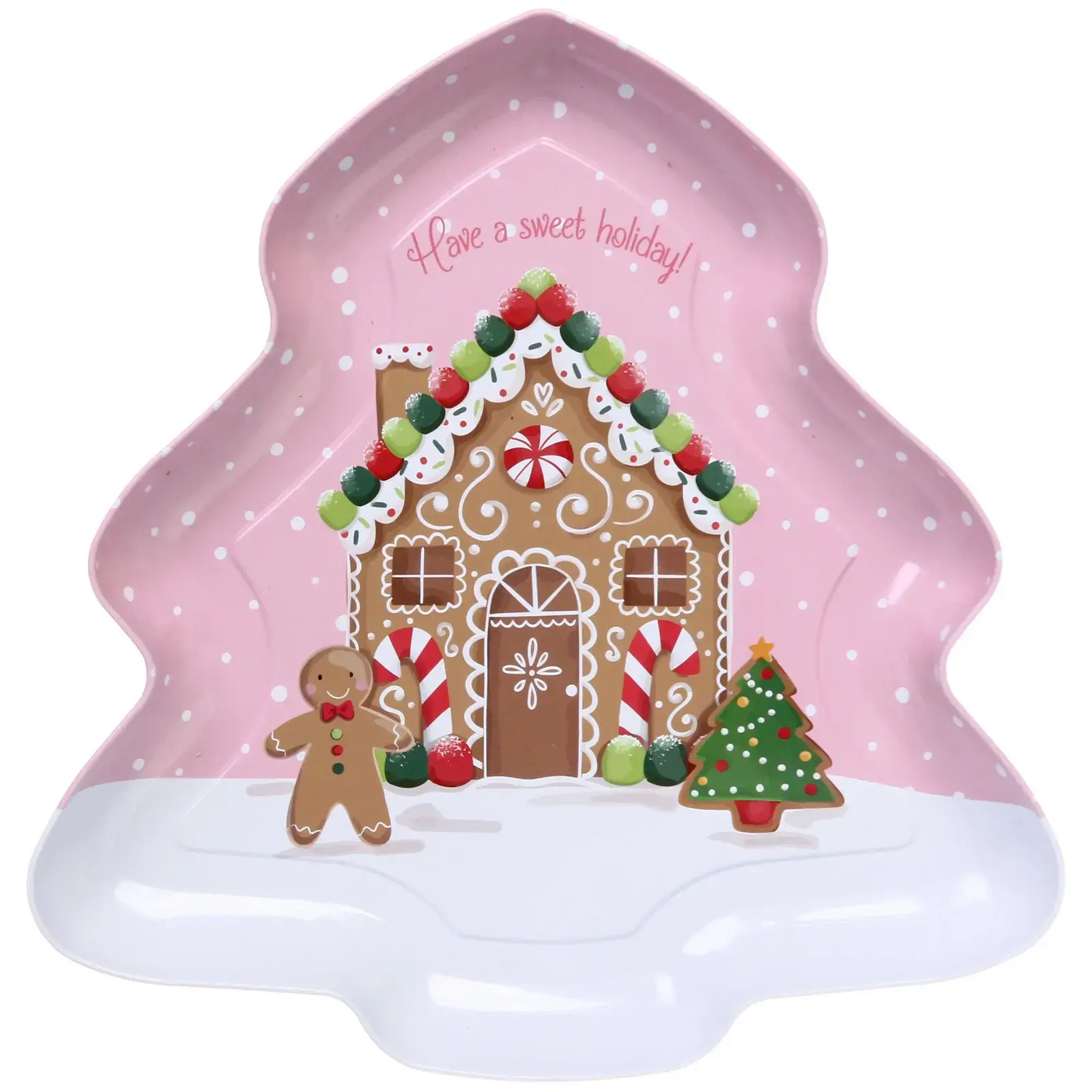 Жестяной поднос «Ёлочка» с дизайном пряничного домика создаст волшебную атмосферу Нового года и Рождества. Идеально подходит для сервировки десертов, сладостей или в качестве праздничного декора.