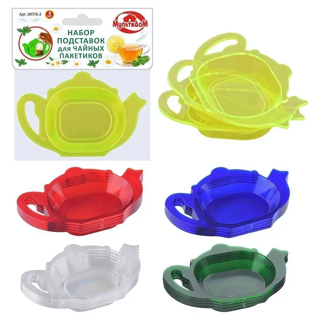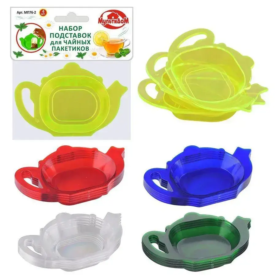 Подставка для чайных пакетиков "МП76-2", пластик, цвета в ассортименте, набор 4 шт.