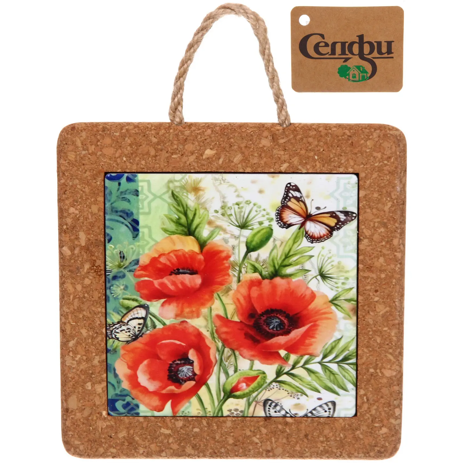 Представляем современное решение для сохранения уюта и защиты мебели от термических повреждений. Декоративная подставка «Маки» из натуральной пробки не только убережёт стол от горячей посуды, но станет выразительным акцентом интерьера благодаря яркому дизайну с маками и бабочками.