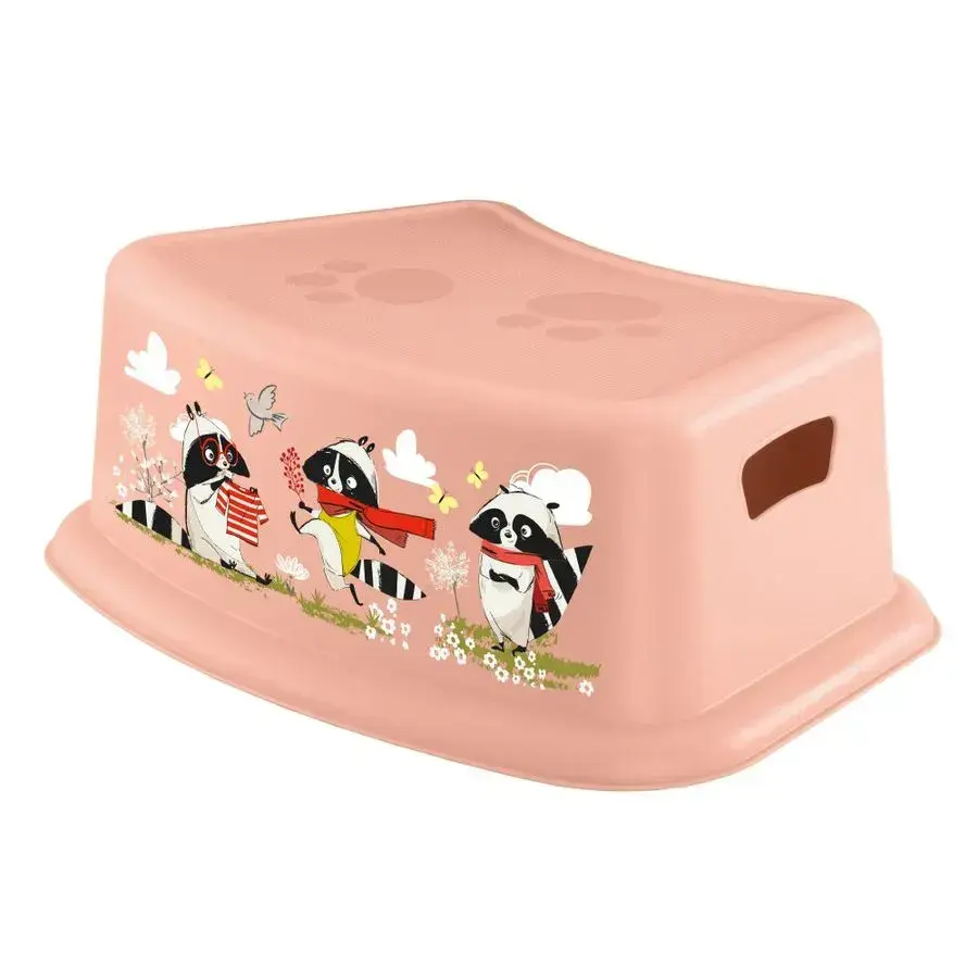 Подарите ребенку удобство и безопасность с оригинальным аксессуаром! Подставка с забавными енотами и цветочным узором станет любимым предметом в детской комнате, на кухне или в ванной.