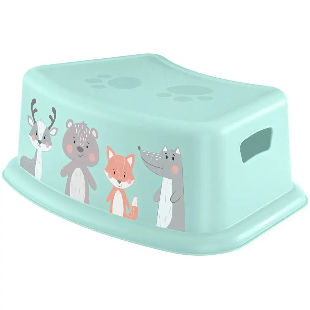 Подставка имеет светло-зеленый цвет и округлую форму, что делает её привлекательной для детей. Она легко вписывается в любой интерьер детской комнаты благодаря разнообразной цветовой гамме. Размеры подставки не указаны, но она выглядит компактной и удобной для использования. Выбирая эту подставку, вы обеспечиваете своему ребенку комфорт и безопасность в повседневной жизни.