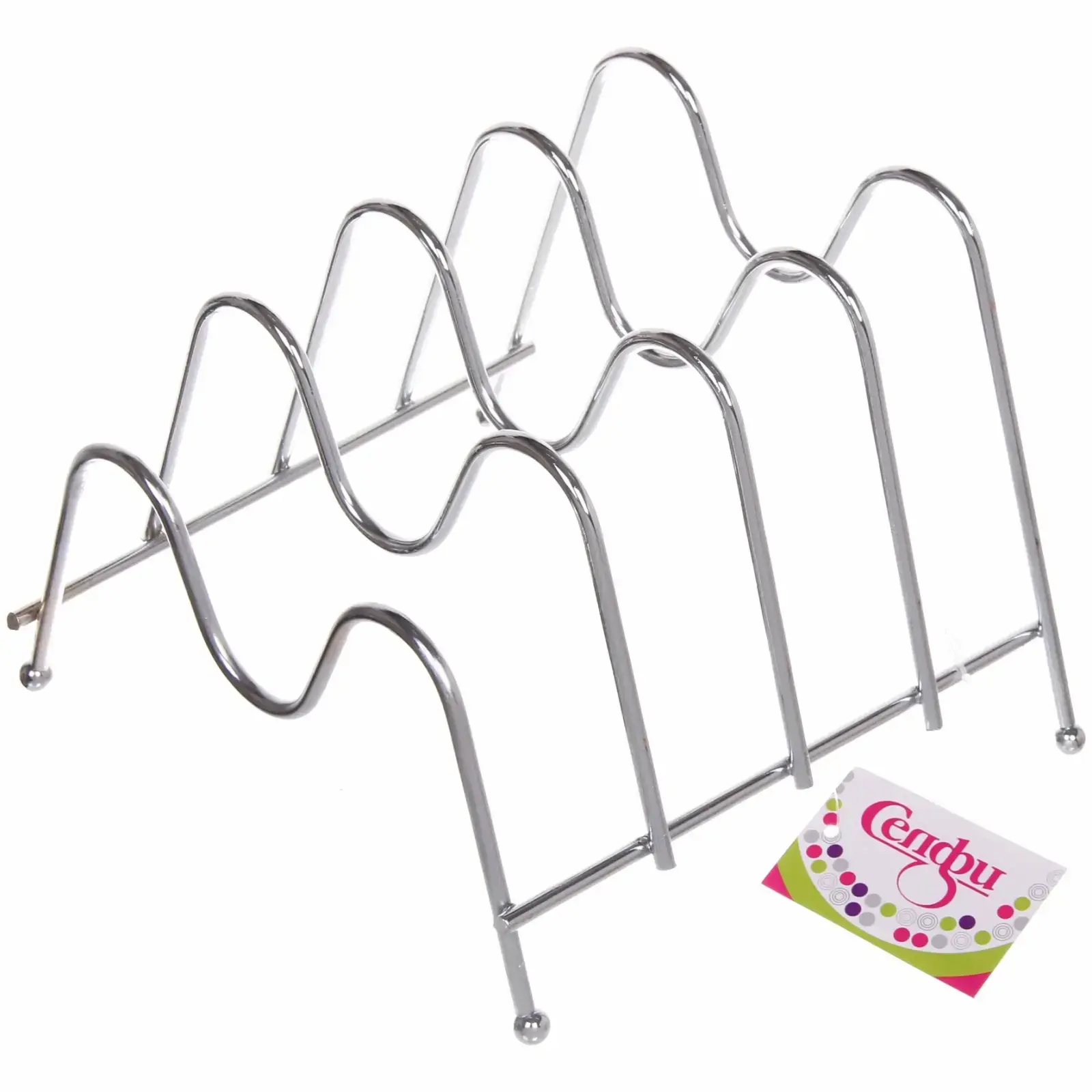 Изготовлен из стали с двойным хромированием толщиной 1.2 мм. Волнообразный профиль создан методом холодной штамповки для сохранения прочности материала. Шарообразные ножки диаметром 15 мм имеют резиновые вставки для предотвращения скольжения. Расстояние между секциями: 5 см — оптимально для большинства стандартных крышек.