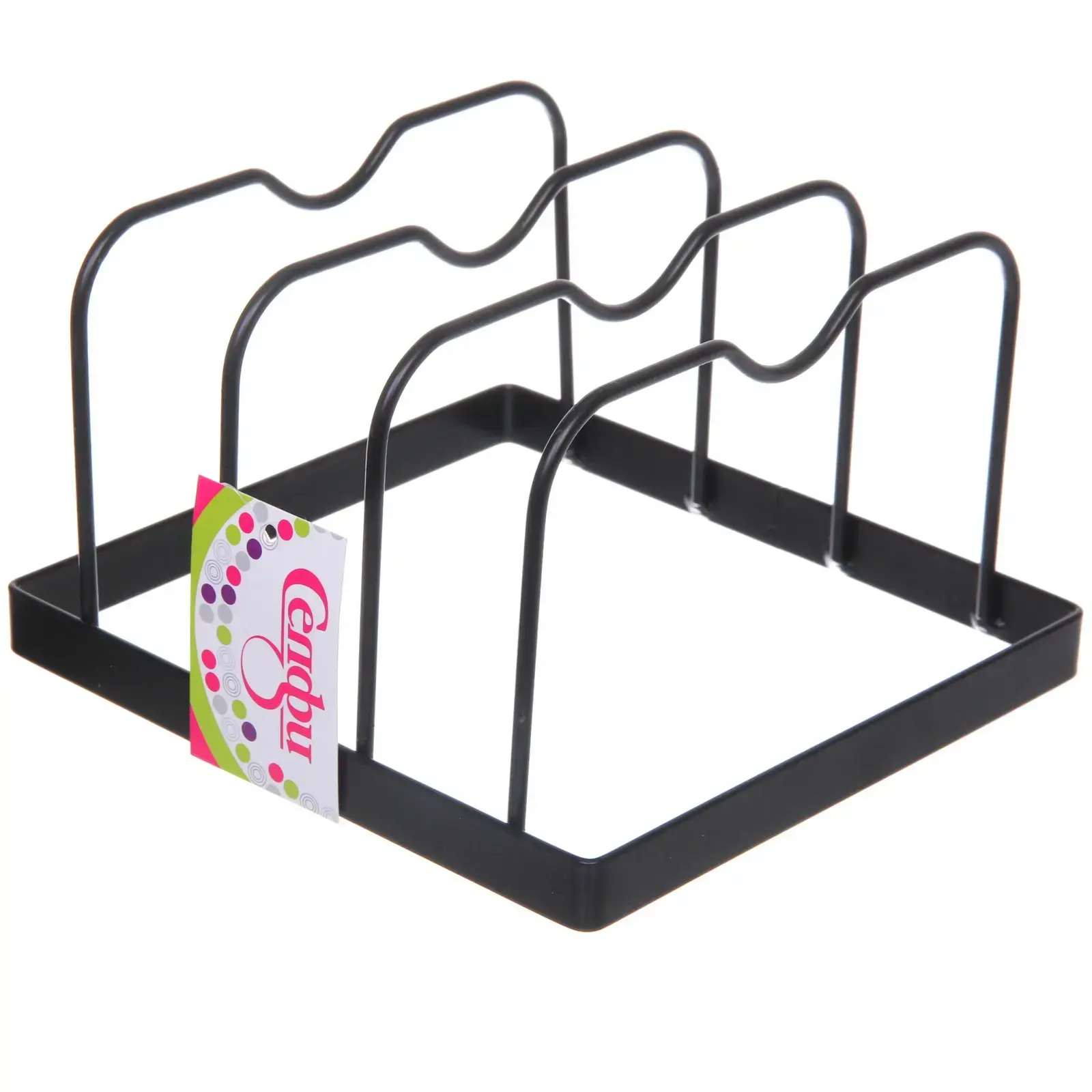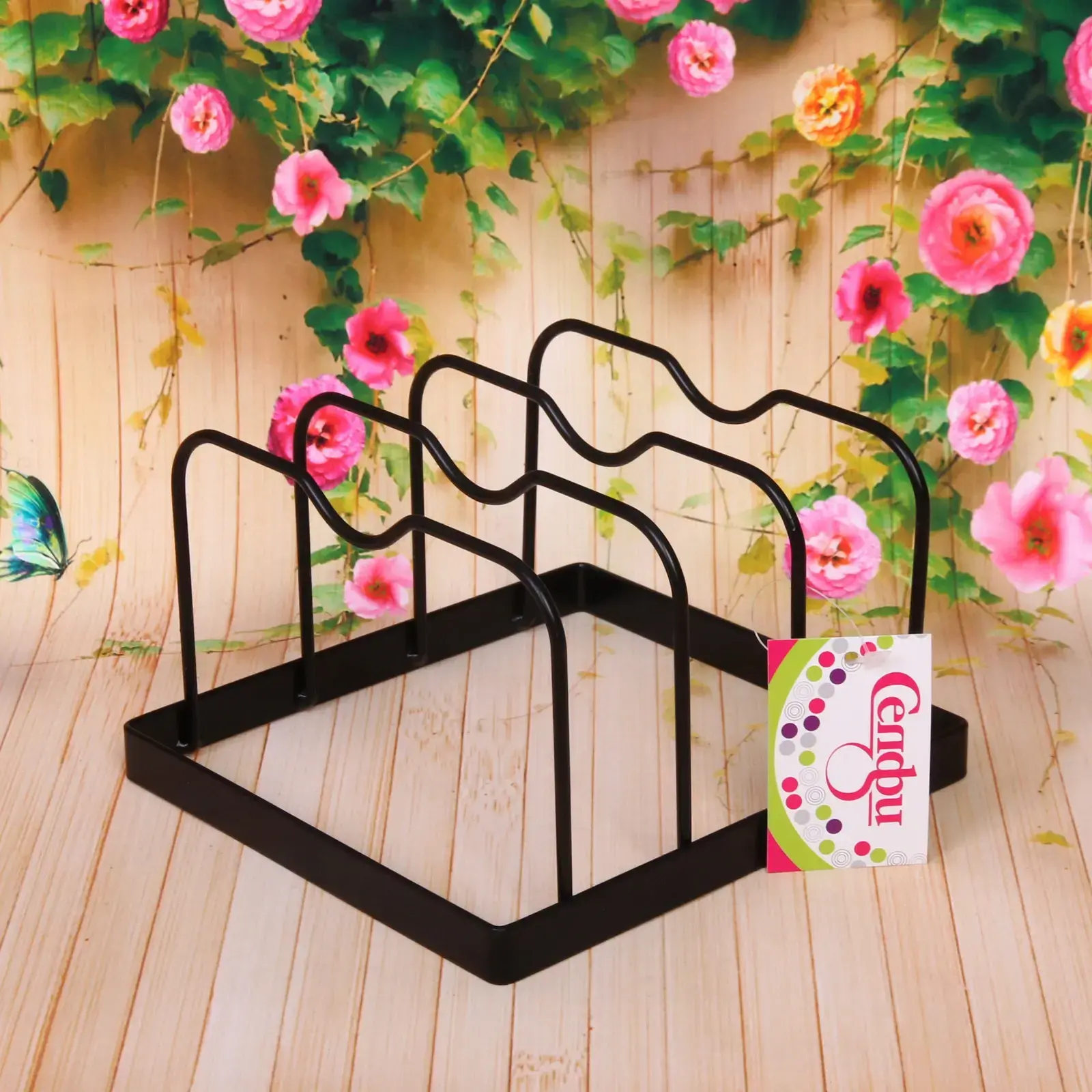 Подставка имеет квадратную форму и состоит из четырёх изогнутых металлических прутьев, которые создают ячейки для хранения. Это позволяет удобно размещать крышки и доски, предотвращая их повреждение и обеспечивая легкий доступ к ним. С подставкой «Brownie» ваша кухня станет более организованной и комфортной.