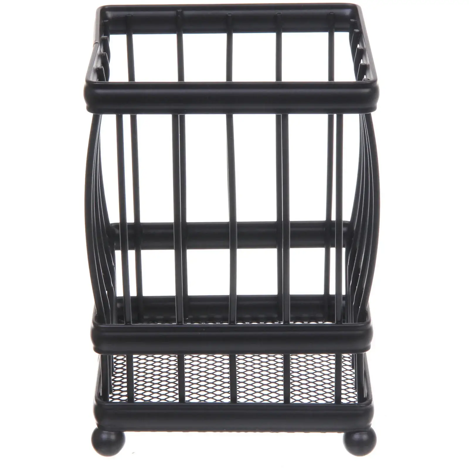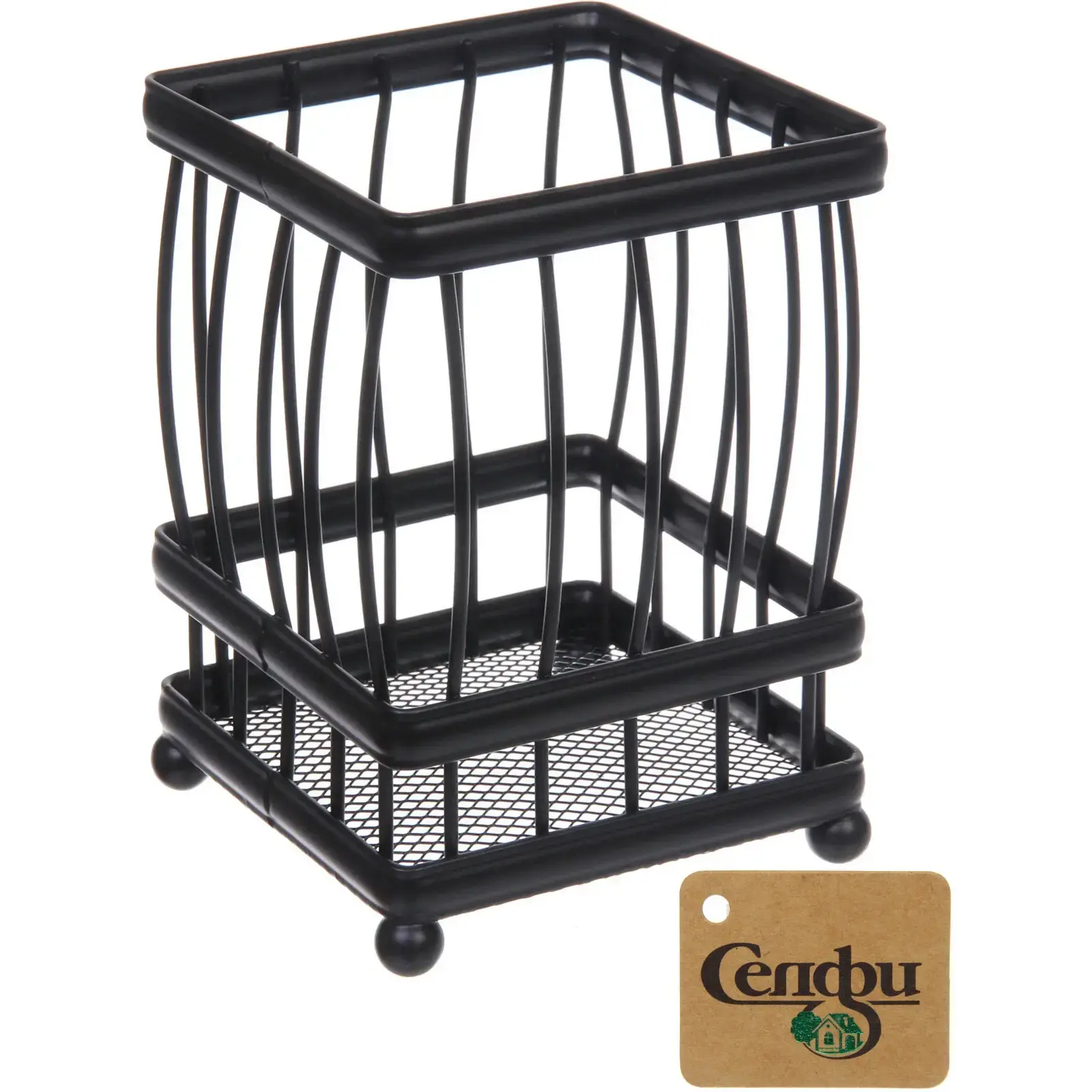 Эта подставка подходит для хранения различных кухонных принадлежностей, таких как ложки, вилки, ножи и другие инструменты. Она может быть размещена как на столе, так и внутри кухонного гарнитура. Компактные размеры 10,5х10,5х15 см позволяют удобно разместить её даже на небольшой кухне, а металлическая конструкция обеспечивает долговечность и надежность.