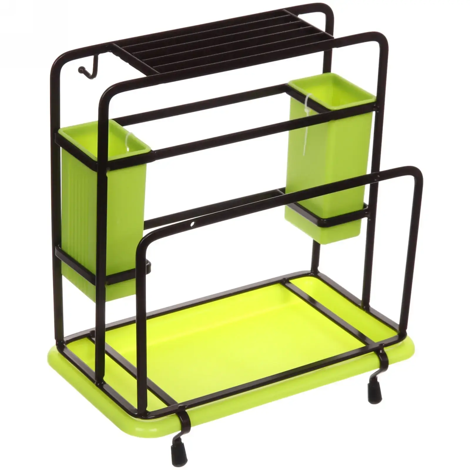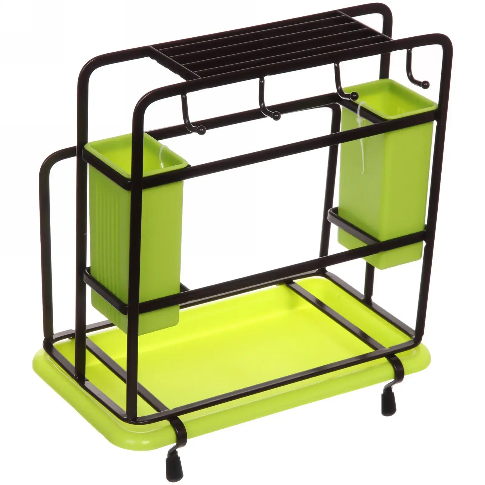 Компактные размеры 26×16×30 см позволяют разместить органайзер на столешнице или внутри кухонного гарнитура. Резиновые ножки предотвращают скольжение, а продуманная компоновка секций помогает содержать рабочую зону в идеальном порядке.