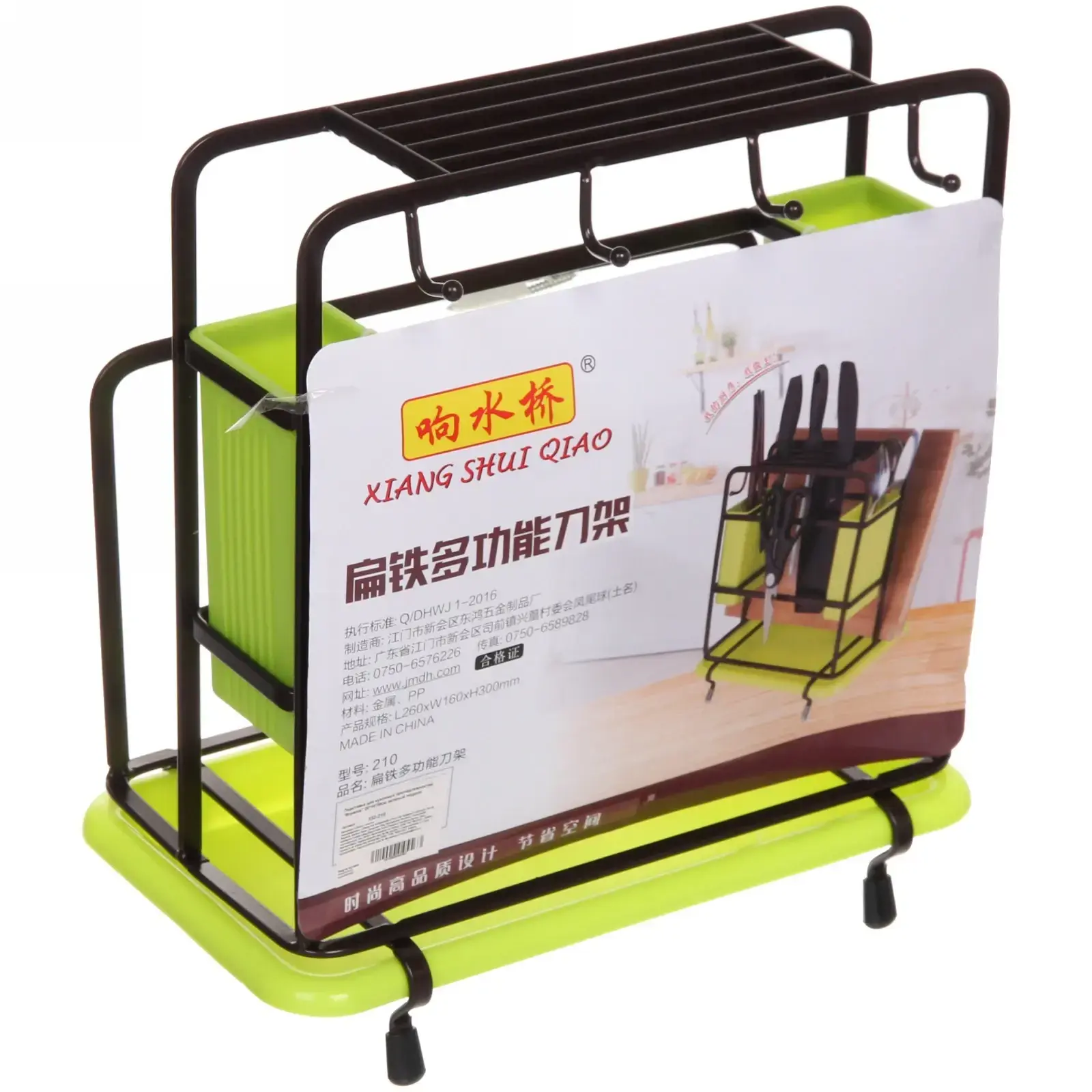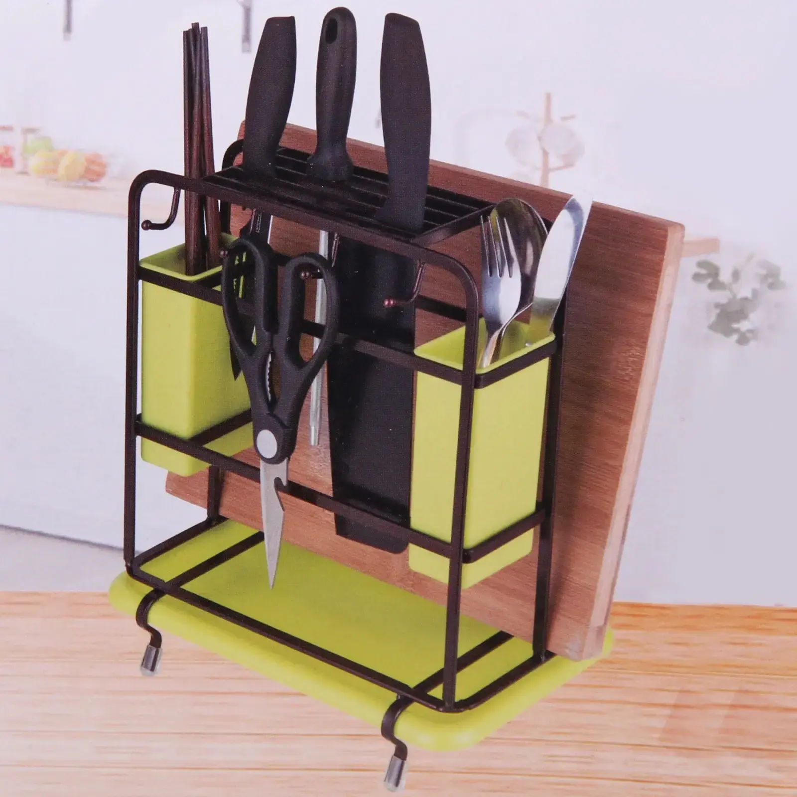- Прочная металлическая рама выдерживает вес ножей и кухонной утвари