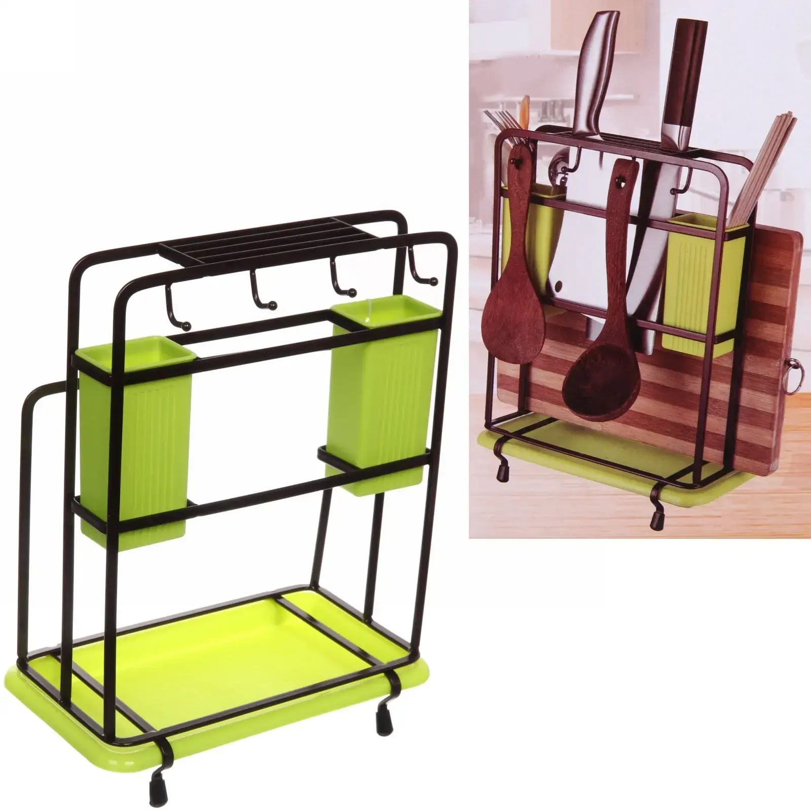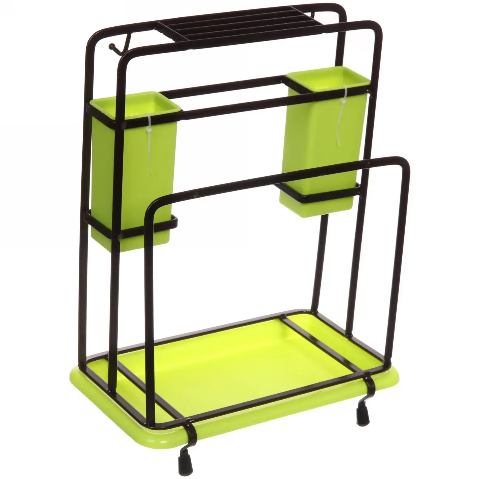 Металлический органайзер с зелеными контейнерами создан для тех, кто ценит удобство и функциональность. Идеально организует ножи, ложки, разделочные доски и мелкую утварь, освобождая рабочее пространство.