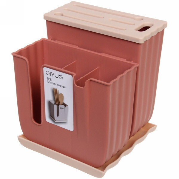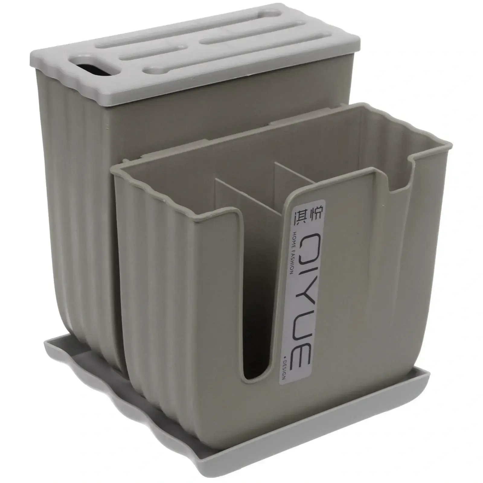 Подставка для ножей и приборов «Стиль» 16x15x19см, пластик, поддон для влаги, 2 секции