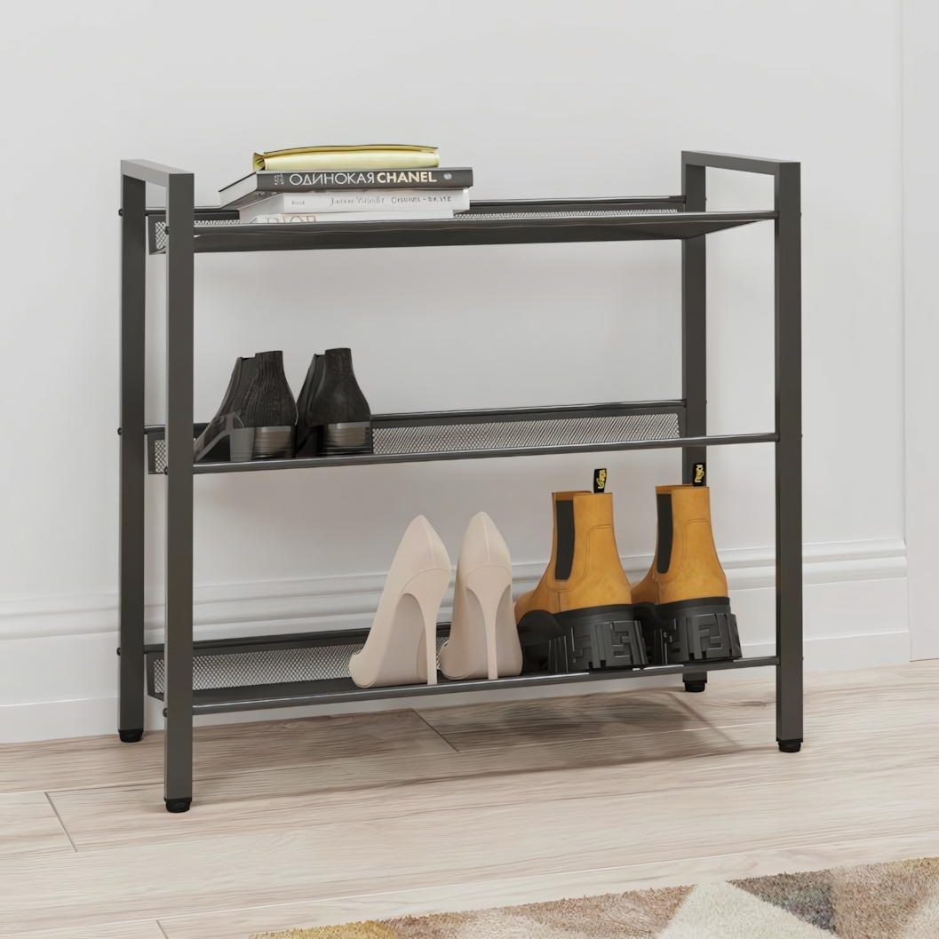 Прочные сетчатые полки выдерживают регулярную нагрузку и подходят для хранения нескольких пар обуви одновременно. Конструкция устойчива и рассчитана на ежедневное использование.