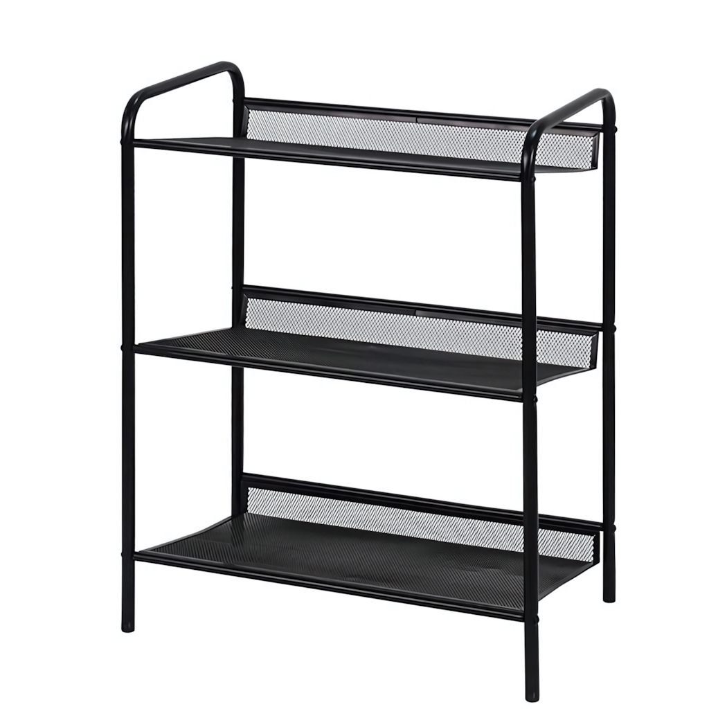 Эта подставка идеально подходит для использования в прихожей, гардеробной или даже в спальне. Благодаря своей конструкции, она позволяет удобно размещать обувь на трех уровнях, что делает ее отличным выбором для семей с большим количеством обуви. Металлический каркас обеспечивает надежность и долговечность, а перфорированные полки способствуют вентиляции, предотвращая накопление влаги и неприятных запахов.