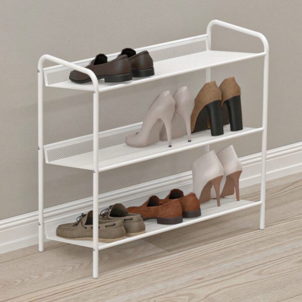 - 3 вместительные полки — до 9 пар обуви одновременно;