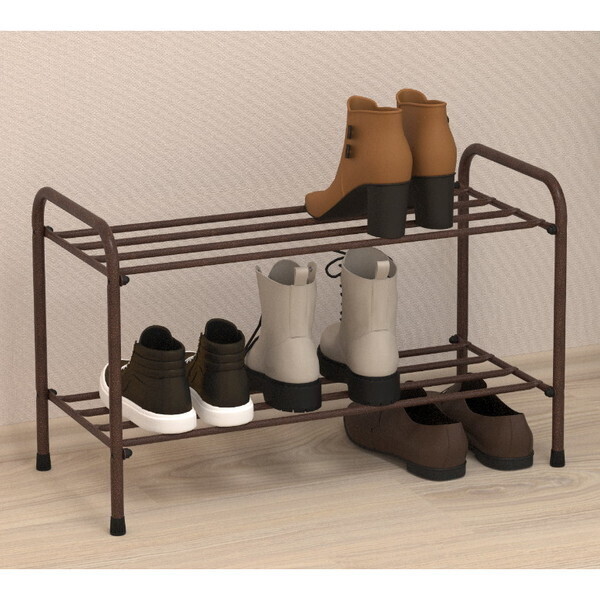 Два уровня позволяют удобно разместить повседневную и сезонную обувь, при этом благодаря расстоянию между полками 215 мм вы сможете хранить как сапоги, так и спортивную обувь. Подставка легко подходит для малогабаритных квартир, загородных домов, офисов и дач.