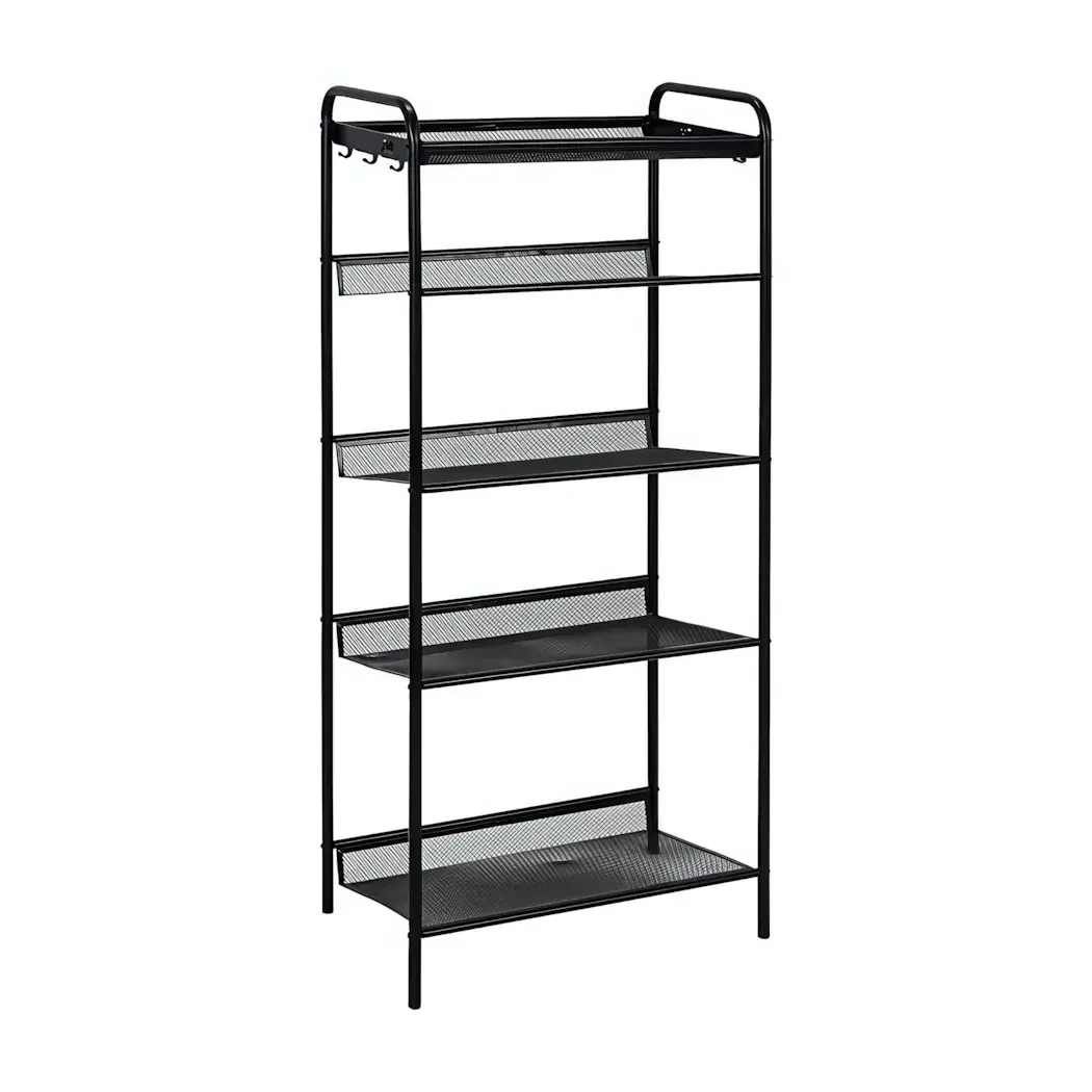 Эта подставка идеально подходит для хранения различных видов обуви: от кроссовок до туфель. Благодаря пяти открытым полкам, вы сможете разместить до 10 пар обуви, что делает её отличным выбором для семей с детьми или для тех, кто любит разнообразие в обувном гардеробе. Подставка выполнена из прочного металла, что гарантирует её долговечность и надежность.