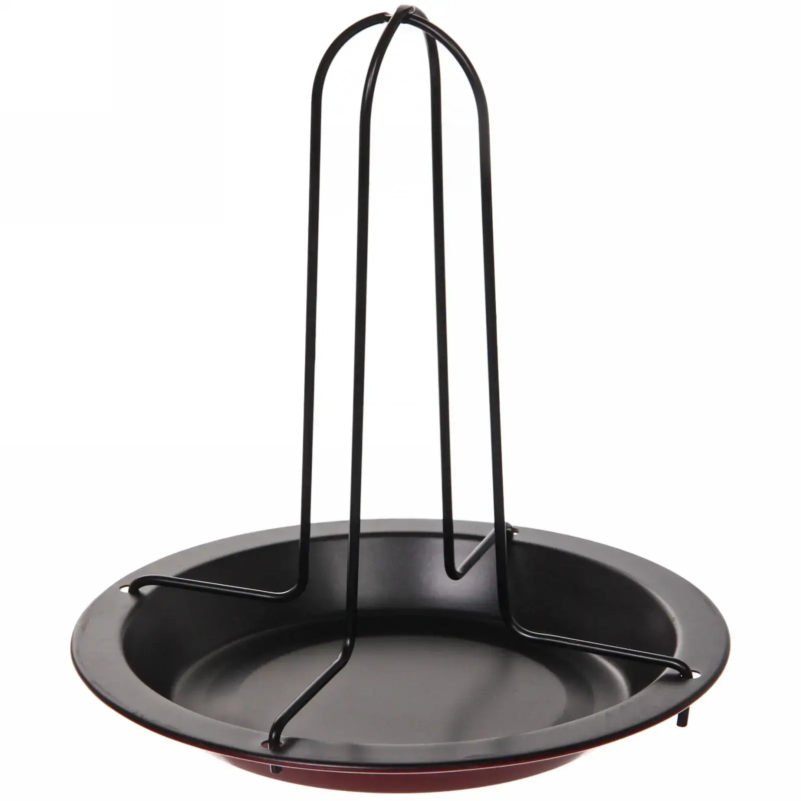 Подставка выполнена из качественного металла, что обеспечивает ее долговечность. Черный цвет и матовая поверхность делают ее стильной и практичной. Размеры подставки не указаны, но она спроектирована так, чтобы удобно удерживать курицу в вертикальном положении, обеспечивая равномерное запекание.