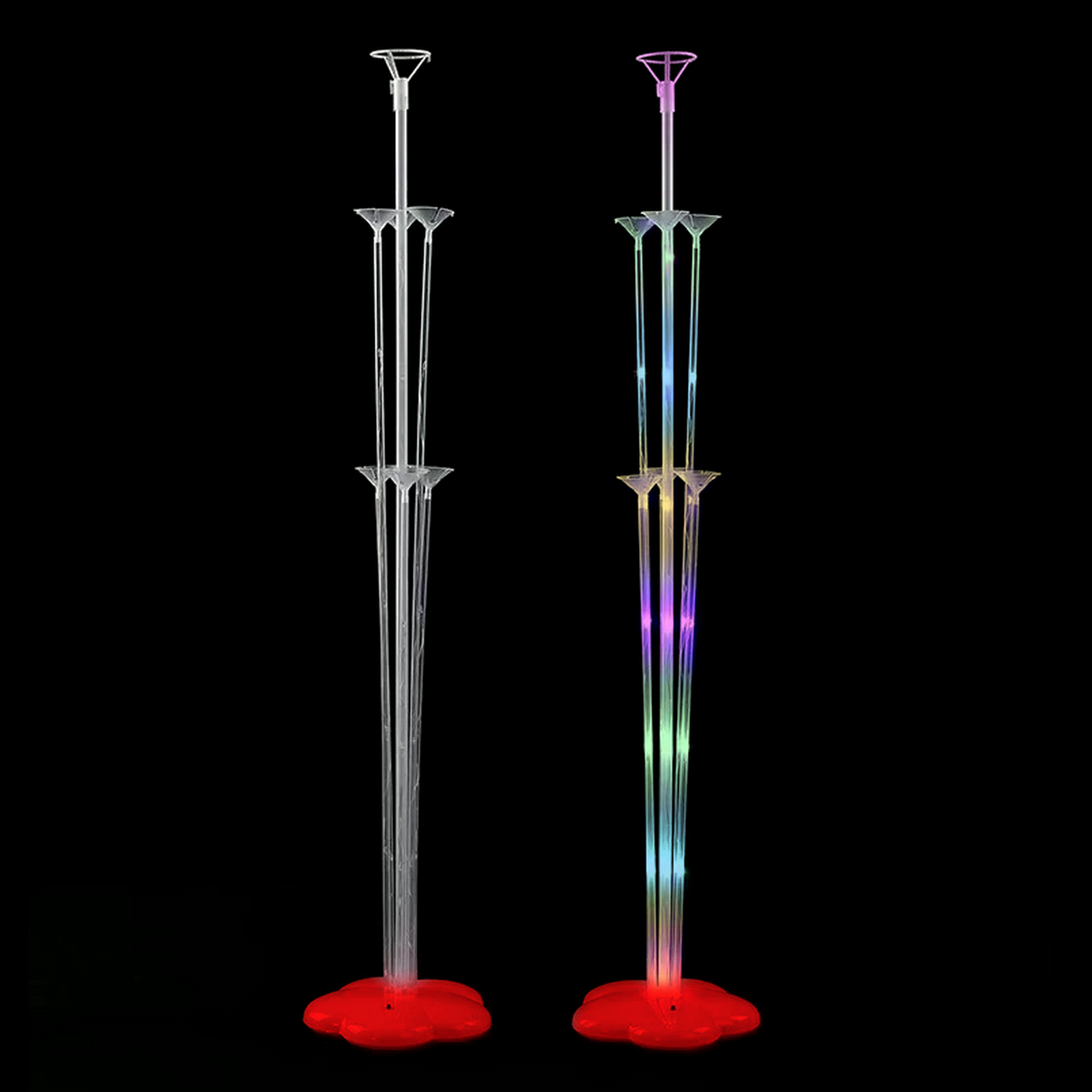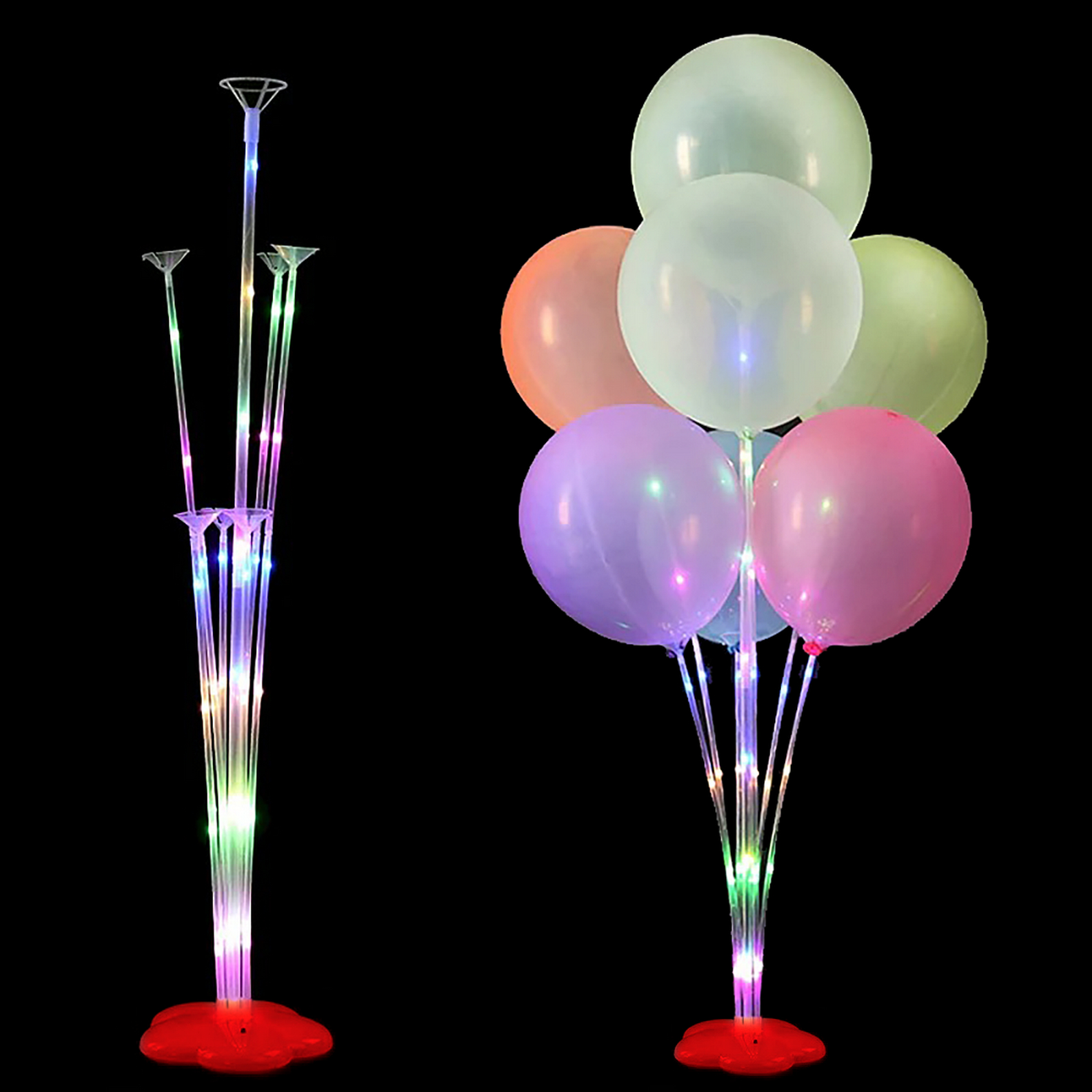 Эта подставка предназначена для установки воздушных шаров и идеально подходит для праздников, свадеб, дней рождения и других торжеств. Она проста в использовании: достаточно установить шары на держатели и включить подсветку, чтобы создать эффектное свечение. Подставка выполнена из прозрачного пластика, что позволяет ей гармонично вписаться в любой интерьер.